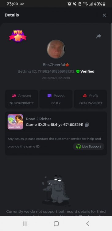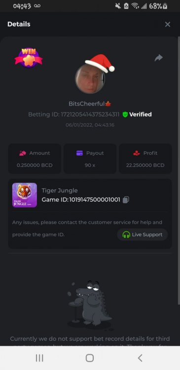 IS THIS CLOSE ENOUGH FOR THE X50 SPECIAL BONUS??? ID# 19043223565593887 X49.30 and for the highest multiplier heres what I got Betting ID: 19043223565594420 X96.3