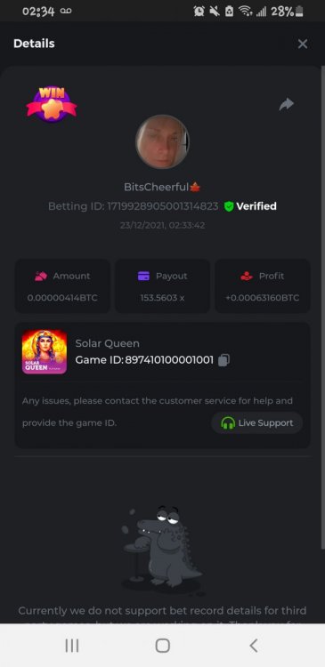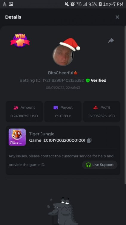 SOLARQUEEN Betting ID: 1725442757969684999 X161.35 TIGER JUNGLE Betting ID: 1725446926384256007 X58 GOLDEN DANCING LION Betting ID: 1725435802926061575 X147.2 -