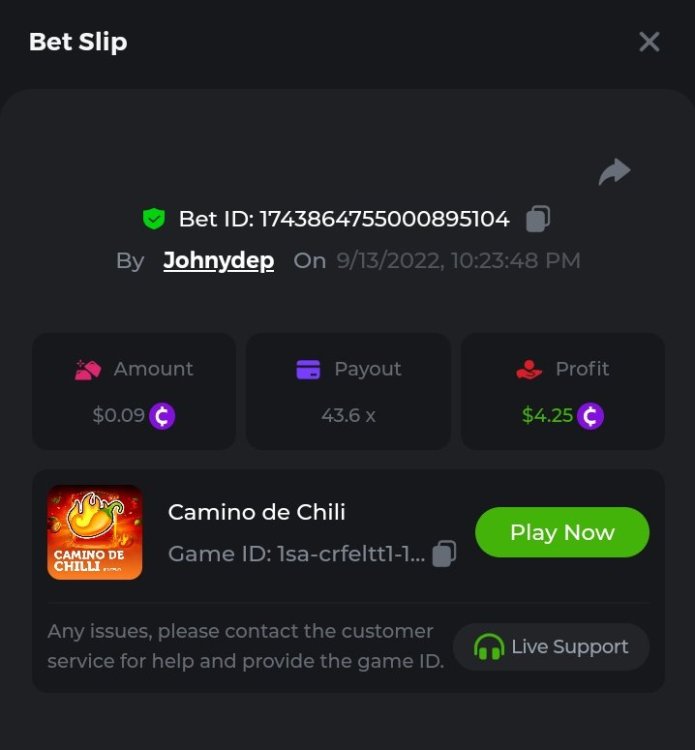 Summary of bets: Wolf Hiding - 92.1x https://bc.game/sd/?sd=10SWD3YOXODYC3 Hot Volcano - 172x https://bc.game/sd/?sd=10SWECOKO7LB0Z Camino de Chili - 43.6x https://bc.game/sd/?sd=10SWN4USZGTBF7 Candy Dreams: Sweet Planet - 110.9166x https://bc.game/sd/?sd=10SWCMDXTVZ40J ________________________________________________ Qualified Bets History: https://bc.game/sd/?sd=10SIRPXTYKVNRN https://bc.game/sd/?sd=10STXZI1P16043 https://bc.game/sd/?sd=10STZLEZ9JSUTV https://bc.game/sd/?sd=10SU090CTBS2DV https://bc.game/sd/?sd=10SU0IN62ZDGCZ https://bc.game/sd/?sd=10SU1F26JQA9SJ https://bc.game/sd/?sd=10SWBBN3RT8T1V https://bc.game/sd/?sd=10SWBQ3ZLH18NN https://bc.game/sd/?sd=10SWC5N7RQJ47N https://bc.game/sd/?sd=10SWCMDXTVZ40J https://bc.game/sd/?sd=10SWD3YOXODYC3 https://bc.game/sd/?sd=10SWDXU8FOPXJN https://bc.game/sd/?sd=10SWECOKO7LB0Z https://bc.game/sd/?sd=10SWMIN6PWG5CJ https://bc.game/sd/?sd=10SWN4USZGTBF7