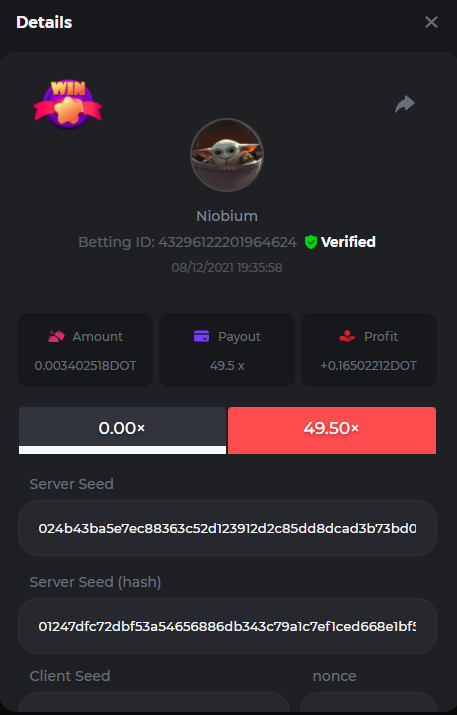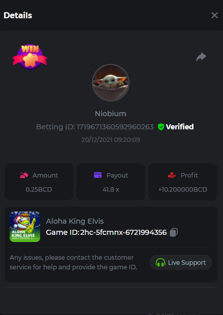 6. $1k Prestige Plinko Challenge #12 △ Be welcome, and we hope you are enjoying the second week of the year. We are grateful for the active participation of all players, and to give our members an exclusive experience, we challenge you in our in-house Plinko game, with a total prize pool of $1,000. (details further down). What's the Challenge? Complete the most consecutive wins on Plinko at Medium risk, 16 rows. Rank will be formed based on the number of points achieved by each player, adding all the multipliers achieved. In case of loss, counting must start again. Do not change the seeds in between the bets, and the nonces must be consecutive. If there is a tie, the player with the higher average bet amount (in USD) shall be the winner. If there is a tie in the amount and payout, the one who posted or edited his post first will be considered in the Ranking. Minimum VIP There's no minimum VIP level Minimum Bet Size $0.05 USD equivalent Eligible Coins All coins are eligible (excepting JB) Available Prizes 1st Place........$300 2nd Place......$200 3rd Place........$100 4th Place.........$60 5th-20th............$15 Bounty Prize...$100, equal share. 110x BOUNTY Post your bet reaching 110x in Plinko within the timeframe of this challenge and receive an equal share of the $100 prize pool! Note that it will not be valid to add together the payouts for this extra bounty, you must reach the payout on a single bet. Original rules apply with min bet, medium risk, 16 rows. How to Enter To enter, copy the bet ID of the bet you'd like to submit. Once you've copied it, post it as a reply to this thread like so: Betting ID: 47205891061056080 In the same post, upload a screenshot of your win by clicking the game ID WITH VIEW IN USD mode ENABLED (accessible at the bottom of dropdown menu for your wallet up top. This way, we can ensure that your bet indeed met the minimum requirement at the time of placing it: Betting ID: 47205891061056080 Please combine all of your hits together in a SINGLE post. Edit your existing post for additional hits, don't create a new post. Bets must be posted within 24 hours of placing bet in order to keep things fair for everyone. Bets must be made during the specified time window stated above. This thread will lock automatically when the time period is over. One (1) entry per household. Anyone found attempting to win multiple prizes will be disqualified from this challenge as well as all future challenges. Failure to follow instructions will result in your submission being null and void. By entering this challenge, you acknowledge that BC.Game has the final decision on results and placement. Payouts will be made within 72 hours of challenge completion, please be patient, we promise you that we haven't forgotten. We check and double check to make sure the rightful winners receive their prize. Prizes will be paid out in BCD. Cheers, and Best of luck playing!