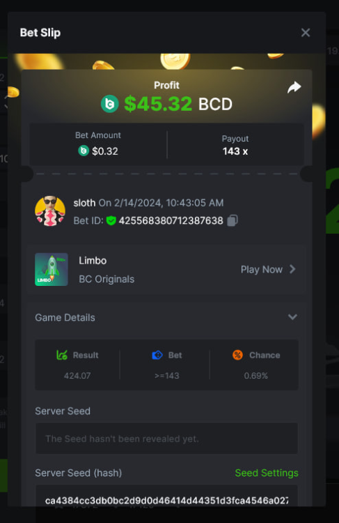 Wizard`s Academy - 470.287x https://bc.game/#/sd/11TA6BMYKQZBNZ Deadliest Sea - 244.1748X https://bc.game/#/sd/11TA2PER3KQ1EB Dragon Quest - 240.1733x https://bc.game/#/sd/11TA3E2NJCAHZN