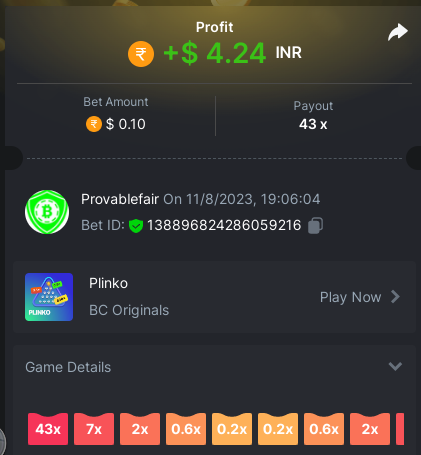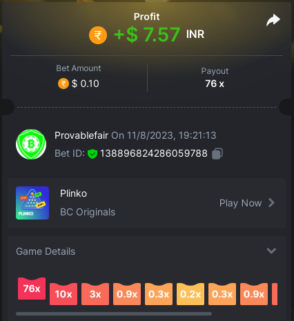 9. 20 x 0.1$ -https://bc.game/#/sd/11HT7GJSRKM8HR - Bet ID 379179551344820548 21.8 x0.1$ -https://bc.game/#/sd/11HT9MWWPP848V - Bet ID 379179551344820847 30 x 0.1$ -https://bc.game/#/sd/11HT5YP3UMVHW7 - Bet ID 379179551344820344 37.6x 0.1$ -https://bc.game/#/sd/11HTD75TOY2BGF - Bet ID 379179551344821085 50 x 0.2$ -https://bc.game/#/sd/11HTHJUIYQ8XZB - Bet ID 379179551344821978 53 x 0.1$ - https://bc.game/#/sd/11HT5F24NFE8NR - Bet ID 379179551344820285