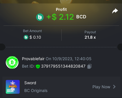 2. Bet 0.1$ - win 20.6x - link https://bc.game/#/sd/11TEI9S7O62CCB - Bet Id : 1791901757675299620