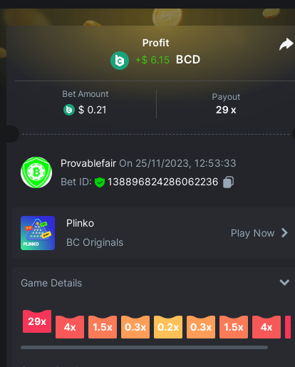 12. 9x 0.15 $ - https://bc.game/#/sd/11GAN5GXNPZVAF - Bet ID: 327907009154299834 15.5x 0.15$ - https://bc.game/#/sd/11GANLBG0FY0GZ - Bet ID: 327907009154300024