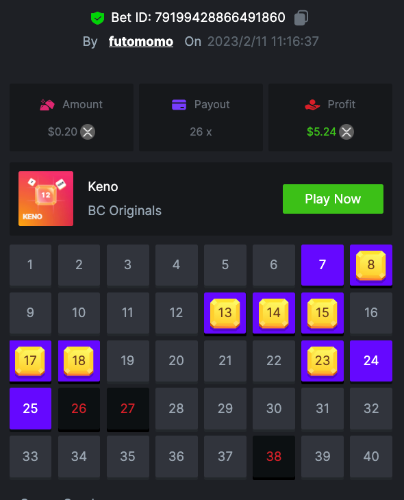$1,500 Exclusive Weekend Keno Prestige Challenge #68