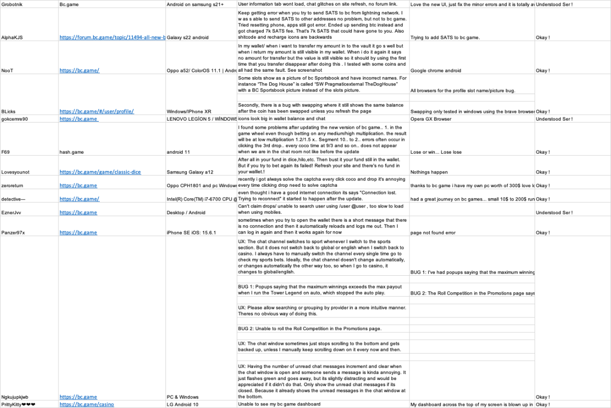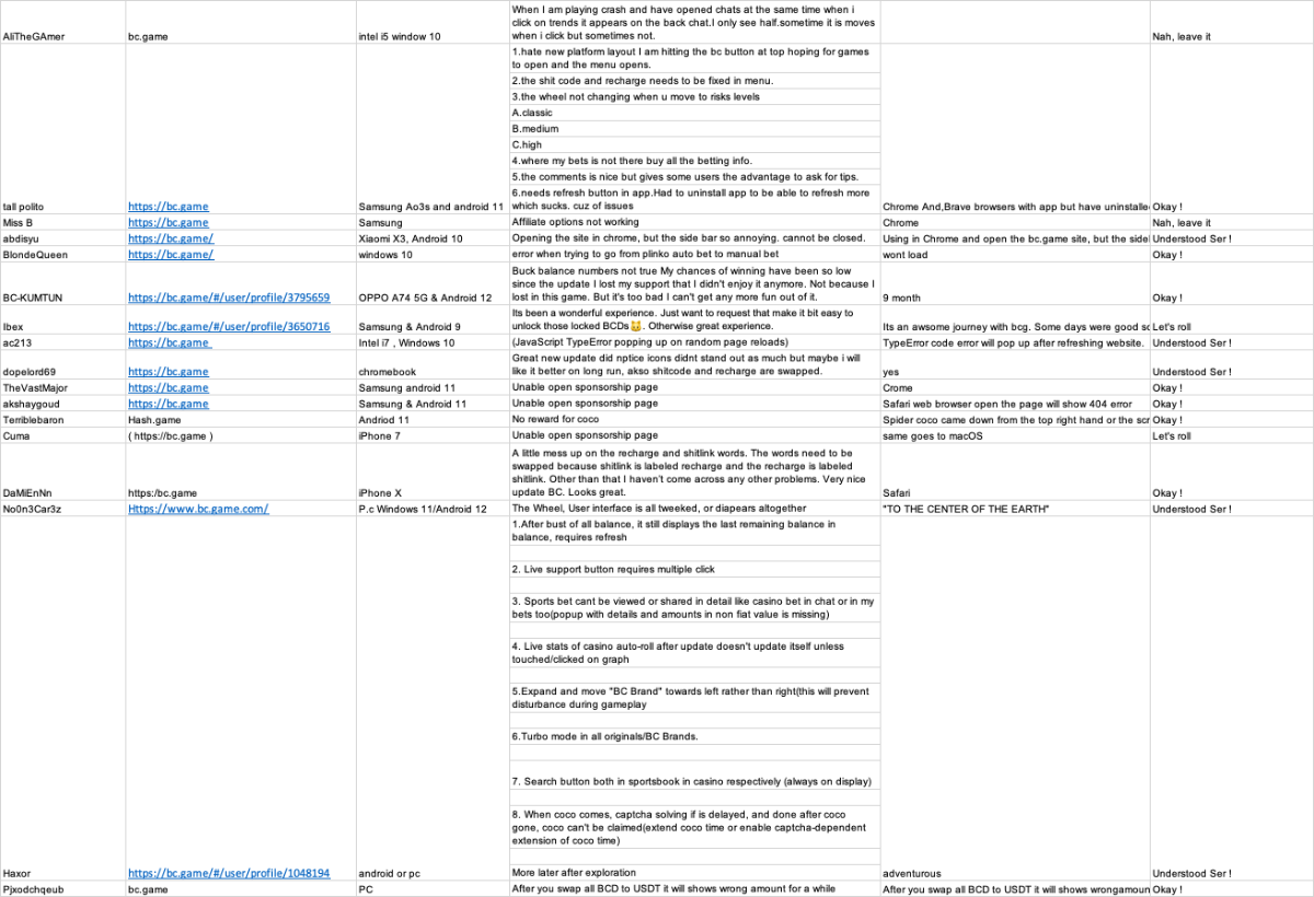 Hola BC.GAME fam, We have constantly been improving our services from your feedback. We upgraded our main site after receiving feedback from our community. We also introduced simply & friendly UI to ensure our brand is always make things simple for everyone. In this feedback, we look forward to knowing the feedback from BC.GAME fam, any live bug / useful feedback / user experience are happy to submit. (Language = English only) Giveaway: $5 for every useful feedback , live bug , great sharing of user experience. Eligible for all VIP 1 above users. Maximum up to $500 bcd for claim Please submit your journey by click HERE Incase you need a example for reference : Website URL ( https://bc.game ) Device & System ( iPhone 13pro , IOS 16 )(Samsung & Android 11) Feedback / Live bug / User experience. ( Unable open sponsorship page ) Journey ( Safari web browser open the page will show 404 error, same goes to macOS ) Screenshot ( Not mandatory to provide, but it's better if we have your visual ) Reward will release after 3 working days start from locked time and result will be update with this same post.