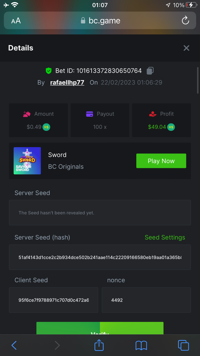 5.10X - https://bc.game/#/sd/118T8ZU4F3ZEAB 8X -https://bc.game/#/sd/118T9J3MOIETJN 11X - https://bc.game/#/sd/118MFK129EPQTV 30X- https://bc.game/#/sd/118TAJJZ4NF7DF 56x https://bc.game/#/sd/118MG0JAHA2F4J 81.50X - https://bc.game/#/sd/118T96I7CBCB2R -