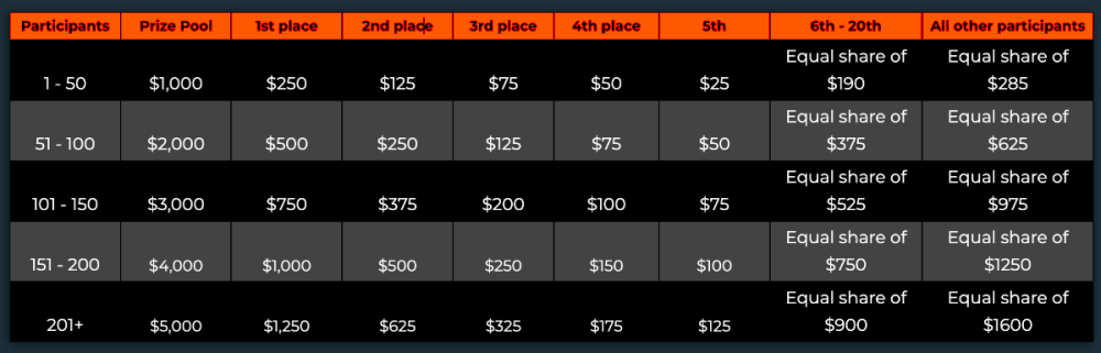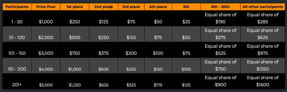 $5k Prestige Crash Challenge #93 DURATION: 16th JUNE - 23rd JUNE 10:00 am UTC Dear valued VIPs, we are delighted to have you back for another thrilling week of challenges and excitement. Brace yourselves for the highly anticipated Prestige Challenge, where you will put your Crash skills to the ultimate test. This week's tournament will revolve around achieving the highest multipliers, promising an adrenaline-pumping experience like no other. With straightforward rules and an incredibly enticing prize pool, we assure you that the stakes are higher than ever. Without further delay, let us immerse ourselves in this extraordinary event. Please review the provided terms and conditions carefully: What's the Challenge? Win the highest multiplier you can on BC.Game's in-house game, Crash. If there is a tie, the player with the higher average bet amount (in USD) shall be the winner. If there is a tie in the amount and payout, the one who posted or edited his post first will be considered in the Ranking. How to Enter To enter, copy the link of the bet you'd like to submit. Once you've copied it, paste it as a reply to this thread like so: Link: https://bc.game/#/sd/1161RODDK14GLV In the same post, upload a screenshot of your win by clicking the game ID WITH VIEW IN USD mode ENABLED (accessible at the bottom of dropdown menu for your wallet up top. This way, we can ensure that your bet indeed met the minimum requirement at the time of placing it: Link: https://bc.game/#/sd/1161RODDK14GLV Minimum VIP Minimum VIP 4 with phone verified will be eligible! Minimum Payouts Minimum payout to qualify is 20x Minimum Bet Size $0.2 USD equivalent Eligible Coins All cryptocurrencies are eligible (excepting JB) Available Prizes GENERAL TERMS Please combine all of your hits together in a SINGLE post. Edit your existing post for additional hits, don't create a new post. Each eligible entry must have the Bet Slip URL, failure to include it will disqualify participation in the event. Bet Slip image is not mandatory. Bets must be posted within 24 hours of placing bet in order to keep things fair for everyone. Bets must be made during the specified time window stated above. This thread will lock automatically when the time period is over. One (1) entry per household. Anyone found attempting to win multiple prizes will be disqualified from this challenge as well as all future challenges. Failure to follow instructions will result in your submission being null and void. By entering this challenge, you acknowledge that BC.Game has the final decision on results and placement. Payouts will be distributed after the event is finished. Please note that it could take anywhere between 24 hours to 7 days after the completion of the event.