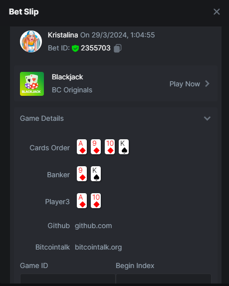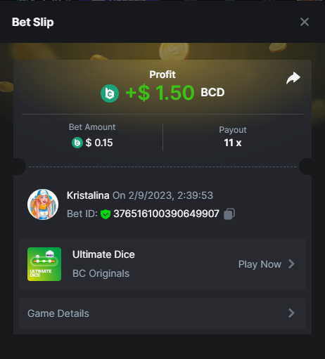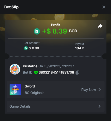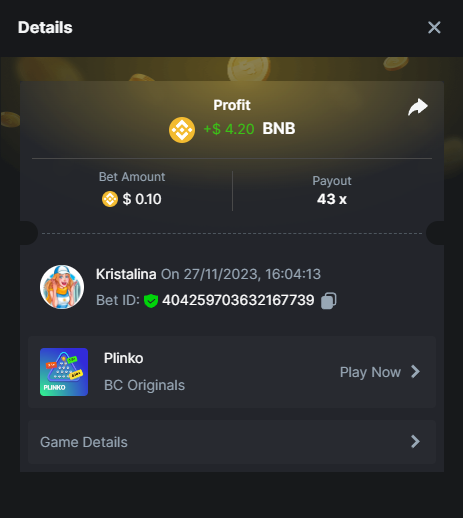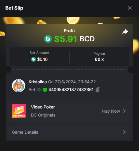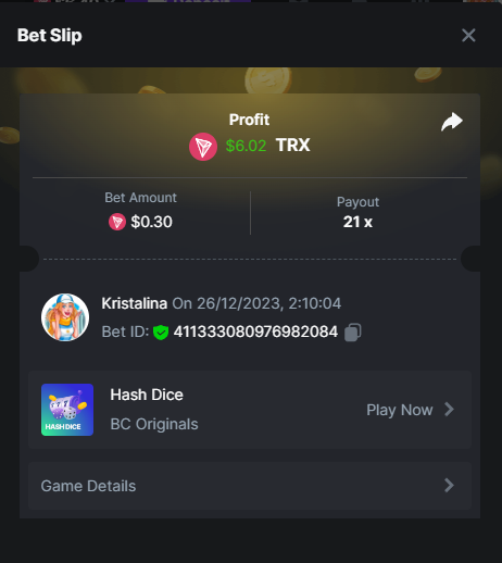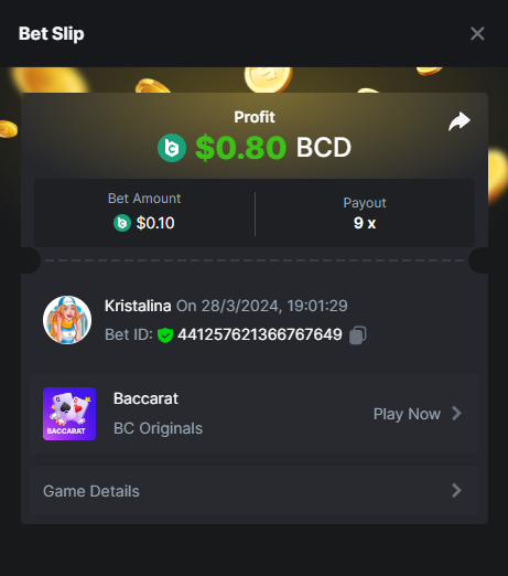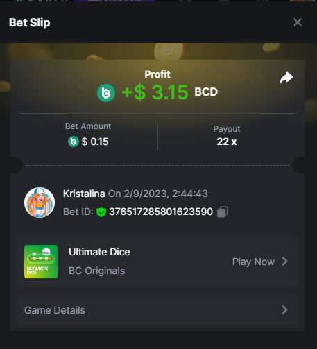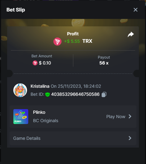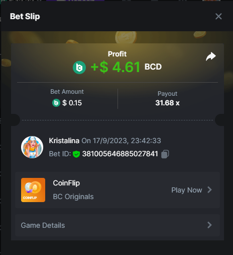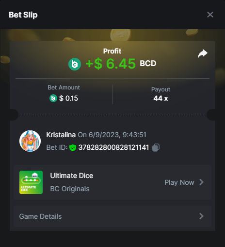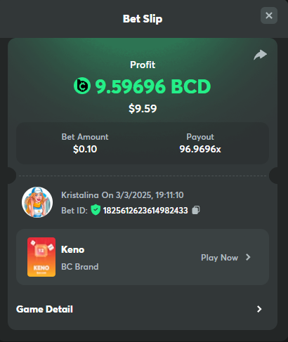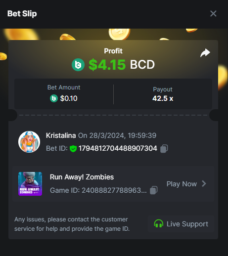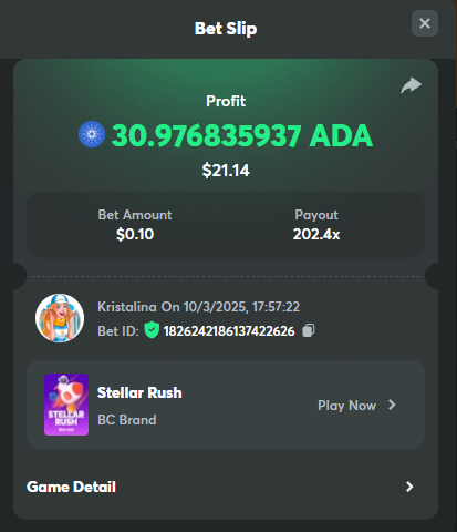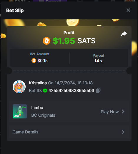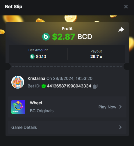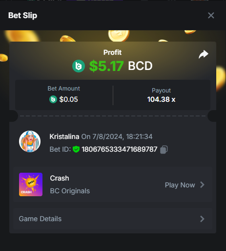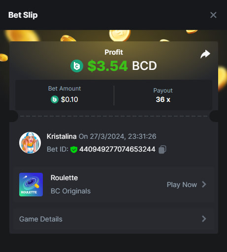 Easy 1. Deposit Txid: 4434113e293eb472a7b171d17fbe54cbfb34631824705869716f789ec0040181 2. Instagram: @LincesaMdq 3. Instagram Post: https://www.instagram.com/p/DHXgr4JspCP/?igsh=ZWgwenpqYXVreTF 4. Twitter: @Kristalinauwu 5. Like, retweet & tag: @Kristalinauwu https://x.com/Kristalinauwu/status/1901728054969274750 6. Follow BCGame Facebook: Gisela Gall 7. Limbo: https://bc.co/game-detail/1825513481832927011 8. Sports bet: Ticket ID: 2513820866270339253 9. Arabian Secret: https://bc.co/game-detail/1825439374915515681 10. Sugar Fiesta 1000: https://bc.co/game-detail/1825441146495751971 11. 2FA activated: Medium 1. Deposit TxID: 4d707ead402ff5771e270374a5fc42f5798fdc6bd13d6bf975996a5316cb53ff TxID: 39d9776a52287c2bdc8bea45c1a751ae618ef4976ed8907766ce39ac0603937f 2. Crash: https://bc.co/game-detail/1825546630112045702 3. Plinko: https://bc.co/game-detail/1825430753182757665 4. Roulette: https://bc.co/game-detail/1825527742035924514 5. Starshine Princess 1000: https://bc.co/game-detail/1825598330617384993 6. Stellar Rush: https://bc.co/game-detail/1825601183186807841 7. Keno: https://bc.co/game-detail/1825612623614982433 8: Poker Ways: https://bc.co/game-detail/1825547398747784483 9. Wukong: https://bc.co/game-detail/1825595350268898850 10. Lottery and Porsche tickets: 11. Sports bet Combo Ticket ID: 2512055034057994476 Hard 1. Wheel: https://bc.co/game-detail/1825529693239491107 2. Crash: https://bc.co/game-detail/1825774085023770502 3. CoinFlip: https://bc.online/game-detail/1825620056214876707 4. Stellar Rush: https://bc.co/game-detail/1826242186137422626 5. Plinko: https://bc.co/game-detail/1825459660201698850 6. Limbo: https://bc.online/game-detail/1826864347105905955 7. Hashdice: https://bc.online/game-detail/1826862839661034018 8. Sea of Olympus 1000: https://bc.co/game-detail/1825539068560977186 9. Gold of Olympus: https://bc.online/game-detail/1826344599486243619 10. Duck Hunter: https://bc.co/game-detail/1825605420251285539 11. Sports bet combo Ticket ID: 2513187573116055908