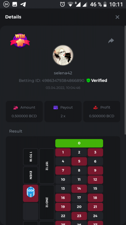 Betting ID: 47900408747661818 х41 Betting ID: 47900408747661819 х1 Betting ID: 47900408747661820 х1 Betting ID: 47900408747661821 х1.5