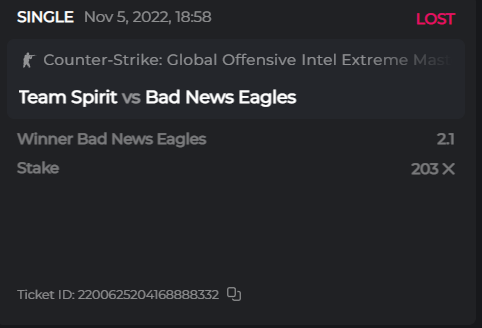 2. any market? Handicap and BTTS? Ticket ID: 2203213827795988840