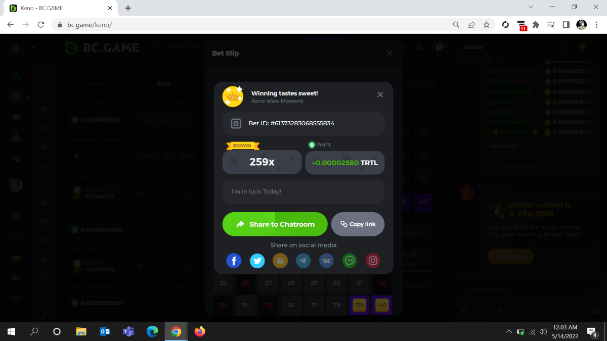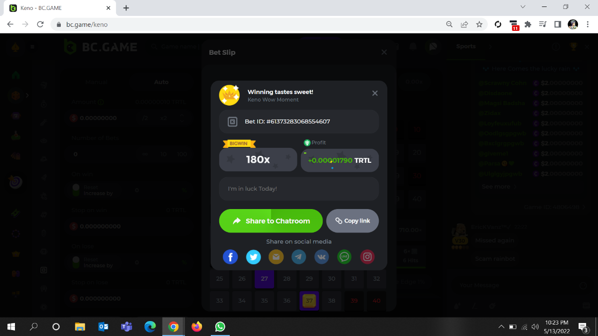https://bc.game/sd/?sd=10KCTT2DWVITQR The bet amount was .00001 equivalent but because of decreasing coin value it shows .00000964
