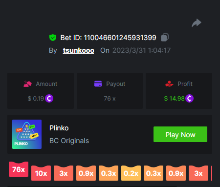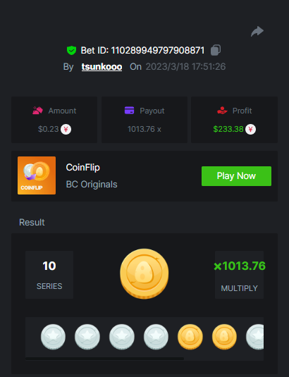 8. Bounty : yes max multiplier : 389.1731 x https://bc.game/#/sd/115VUTRGSUE42B https://bc.game/#/sd/115VVWQ8HP6WIB