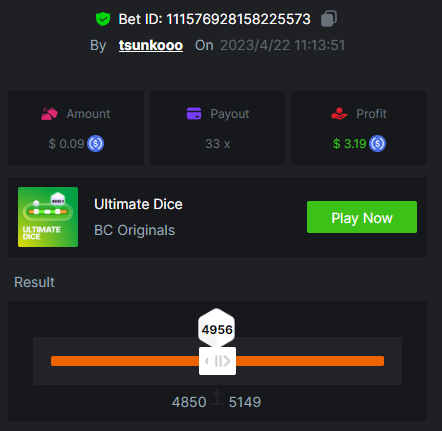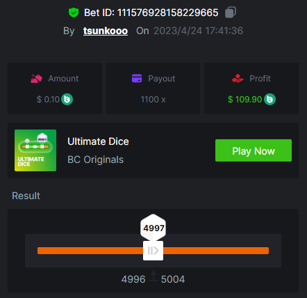 5. 16 / 18 15x : https://bc.game/#/sd/118GFIGCQ60F0Z 25x : https://bc.game/#/sd/118307NZG7BIMR 33x : https://bc.game/#/sd/118308U5XWPFDF 44x : https://bc.game/#/sd/118309S5Q2DO9F 55x : https://bc.game/#/sd/11830ANG3RKNBN 75x : https://bc.game/#/sd/11830BI9MIGDG3 99x : https://bc.game/#/sd/11830C9OB6KFTF 150x : https://bc.game/#/sd/11830EG1HKO3YR 220x : https://bc.game/#/sd/11830FDHYC52XF 300x : https://bc.game/#/sd/118E1FGYISFGUR 396x : https://bc.game/#/sd/118334LL80H6AB 550x : https://bc.game/#/sd/118340LJWHREHF 825x : https://bc.game/#/sd/1187VLF6RFQ0WJ 900x : https://bc.game/#/sd/118805YACY7ZTF 1100x : https://bc.game/#/sd/1188MOMU9NUVIR 2475x : https://bc.game/#/sd/118DA4DS45SAVN