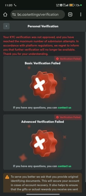 Sir I had applied for KYC but due to some reasons it is not approved and now it is showing I had attempted maximum number of submissions but sir I had only applied once still I faced the problem there are 6 maximum number of attempts I had only tried once kindly solve my problem sir remove this restriction so that I can reapply for KYC and continue my gaming that would be your most kindness