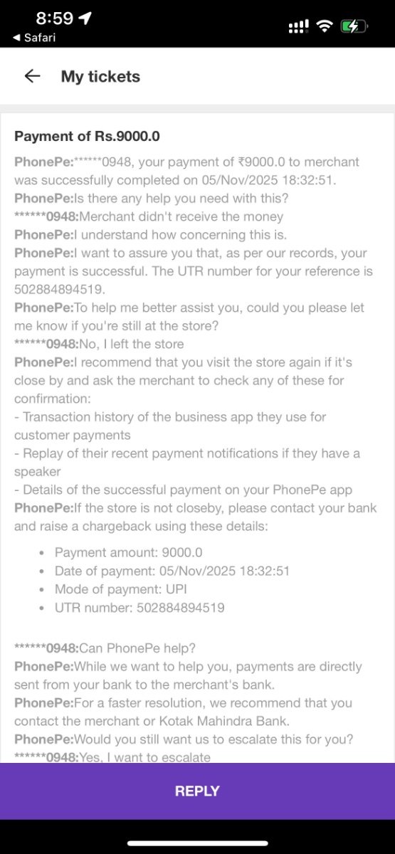 1. you closed my ticket #9395255 without solving anything. I never asked to close it. ₹9,000 deposit from 5 Nov (UTR 502884894519 / UID 99007906) still missing. Stop hiding behind bots and fix this. #BCGame #UPI #Scam