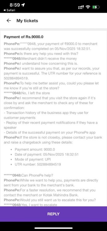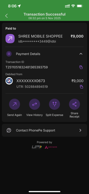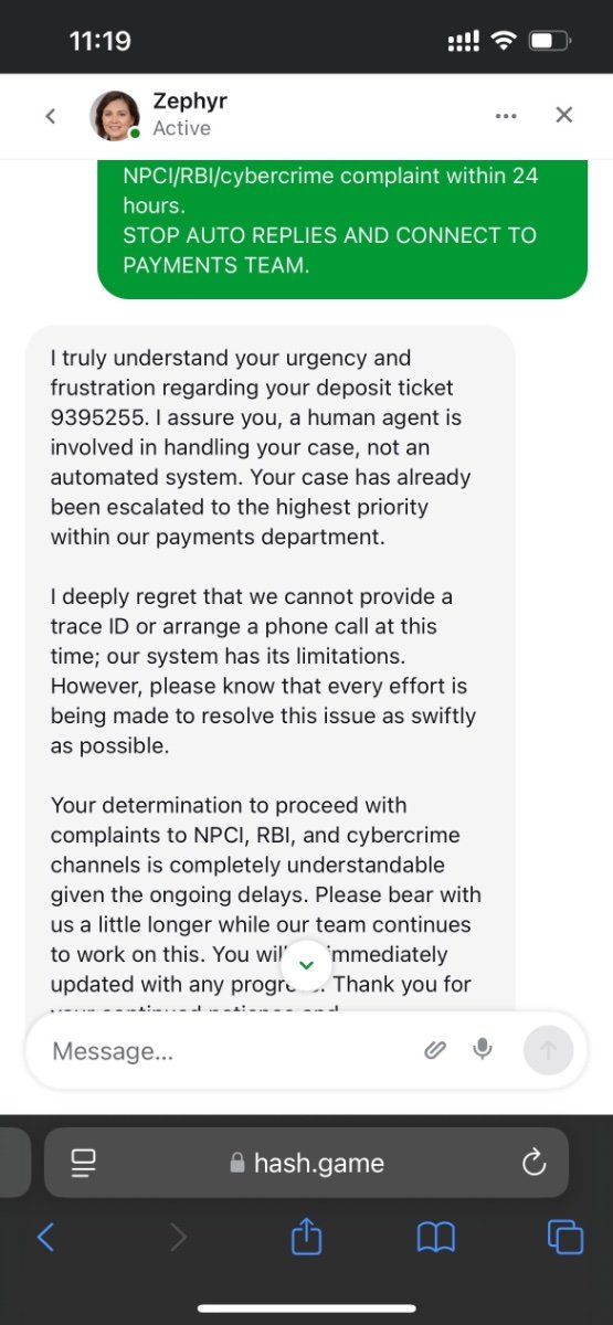 2. This is not the first time I’m facing this nonsense. On 8 September, I made another deposit of ₹1,000 that you never resolved — not even after two months of waiting and following up. That was frustrating enough, but now ₹9,000 missing? This is ridiculous and completely unacceptable. If this is how you handle user funds, then you’re putting your entire credibility at risk. I’m not going to sit quietly this time — either credit the ₹9,000 to my account immediately or refund it back to my payment source without further excuses. I have attached the PhonePe transaction proof showing the successful payment. I expect a proper resolution, not another generic response. Handle this seriously — this is the second time, and I will not let this go ignored. Bc game id 99007906