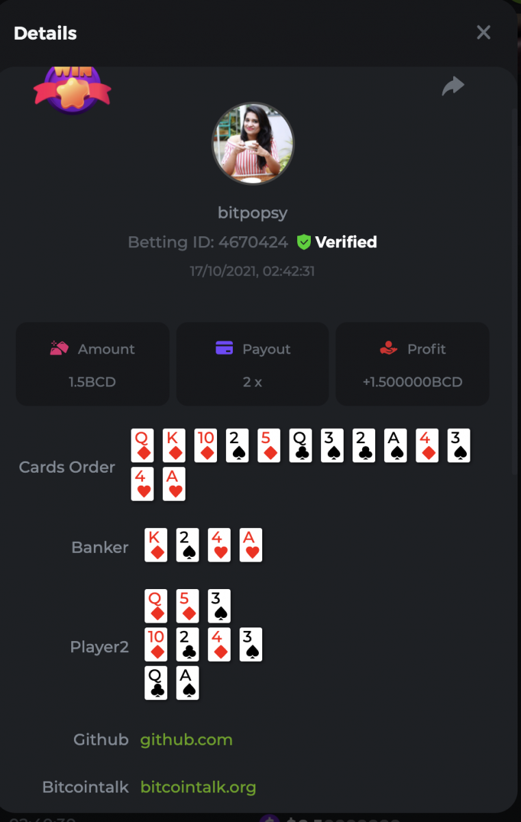2. Betting ID: 4670424 https://bcgame-project.github.io/bcgame-blackjack/?s=Hap7IGFQQ%2B3uAq6nBMUPXv%2BXWHIwAMZi64TRa57KXJ8YR%2FaHqVcAj%2FdmZO0SALPSJqHgEpQg2cY8ug3BR2%2FYx71QTrv%2FwkZXH1%2FttPY1nY5hqjLmel5YKAW%2BfVVw7T7my7DlXyMIG7ka89uovqK1sX%2ByETLEMlI2GqB9udtbQ0w%3D&i=222476&range=255,268 Betting ID: 4695033 https://bcgame-project.github.io/bcgame-blackjack/?s=00000000000000000009e93621499e5a63d79a6293609ce52e95e93dd49cb1be&i=11828835