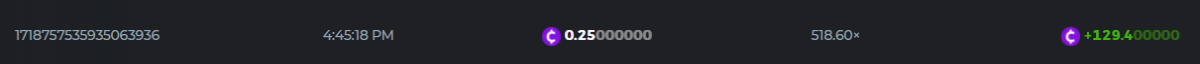 Betting ID: 1719831209635249024 Aloha king elvis 102.80x Betting ID: 1719854577341462535 Candy Monsta 134.25x -