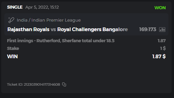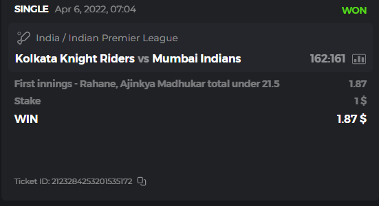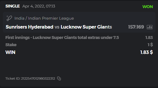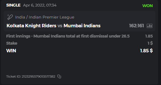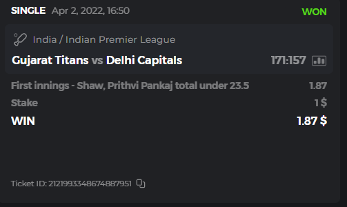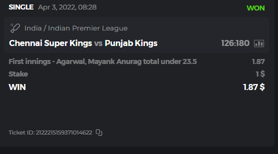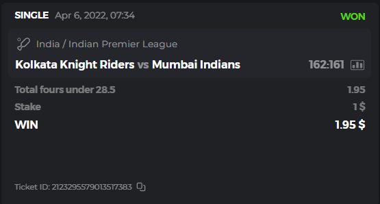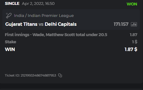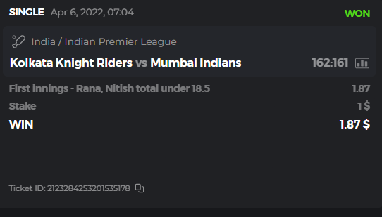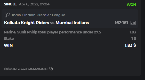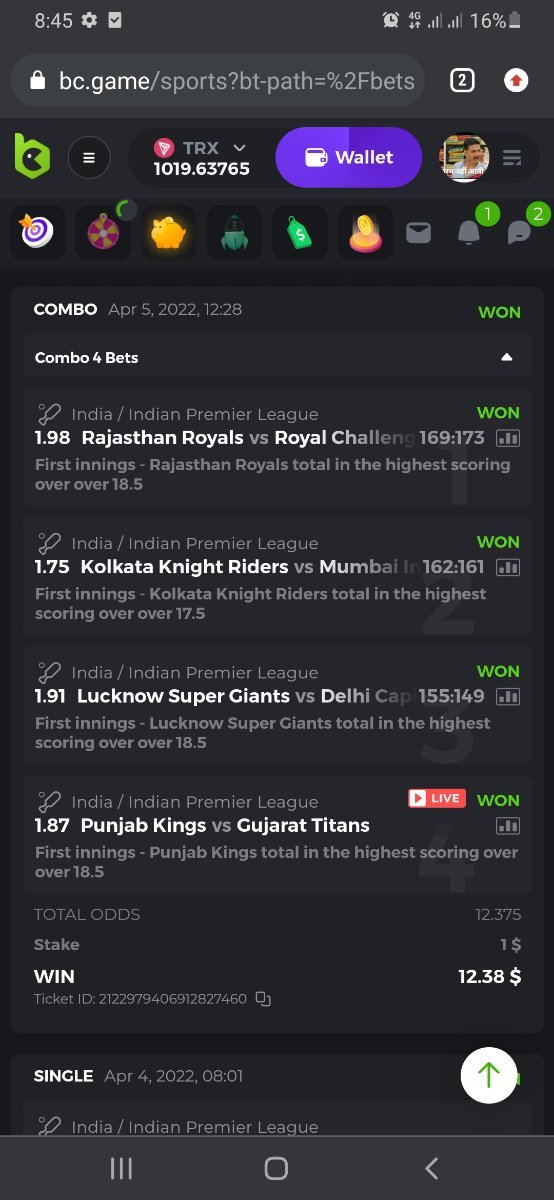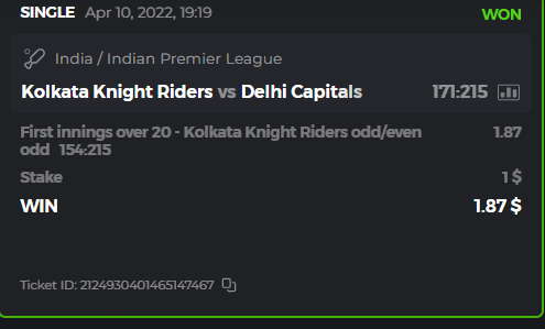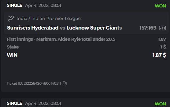 Well played bro but i Think your parlay combo bets are invalid because the Minimum odds pr match is 1.3 so you placed bet in combo of 4 than total odds must be atleast 2.8561 but total odds of your parlay combo bets showing 1.78 it means you have selected market lower then 1.3 in combo bet. please upload full screen shot like this of your combo bets so other competitors can see odds and can see that you have placed bets in IPl only in combo bet.. Thanks -