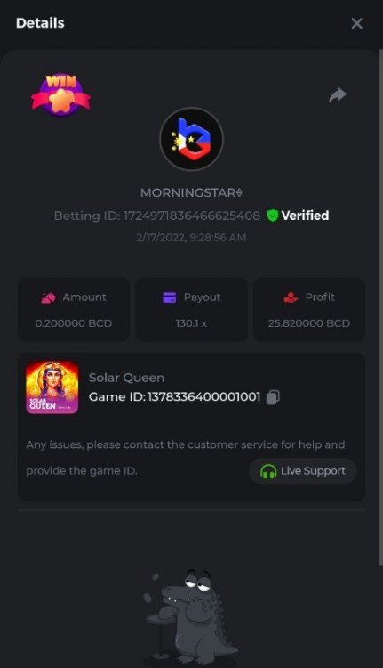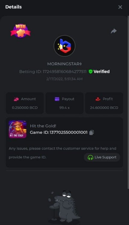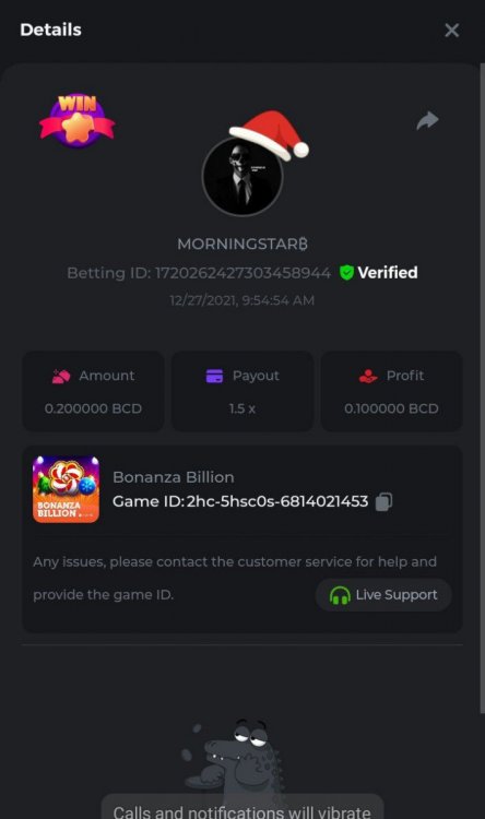 $4,000 Top Tier Booongo Multiplier Battle!BC_Morningstar replied to Niobium's topic in Past Challenges Betting ID: 1724957531707811456 Betting ID: 1724958160684277511 Betting ID: 1724959370863708800 Betting ID: 1724971836466625408