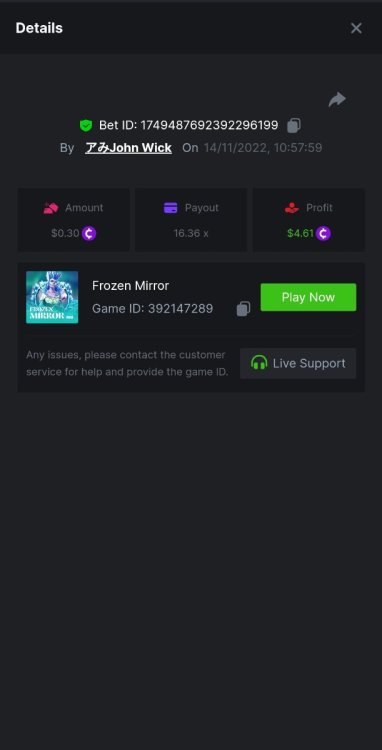 Bounty: Yes Total basebets: $23.39 Average basebet: $4.67 Easy https://bc.game/#/sd/10XJP5KX0S9PUB Médium https://bc.game/#/sd/10X756QG8BW6XF Hard https://bc.game/#/sd/10XGDDXFQXBAC3 Extreme https://bc.game/#/sd/10XHAF0X4UMO7N Nightmare https://bc.game/#/sd/10XJETIMFEQ87N -