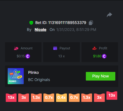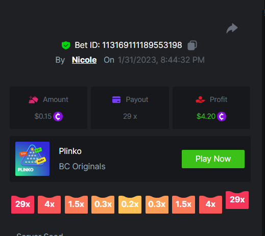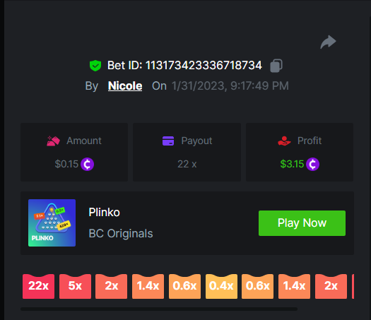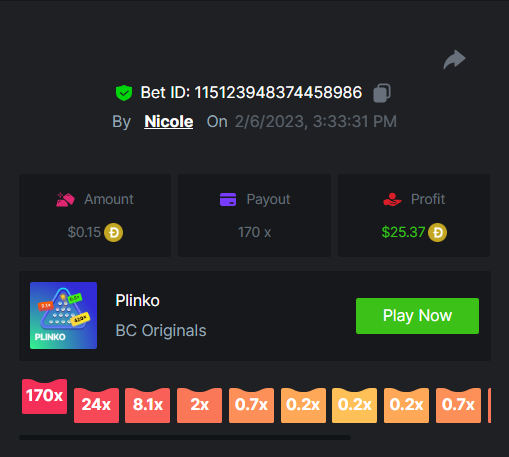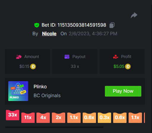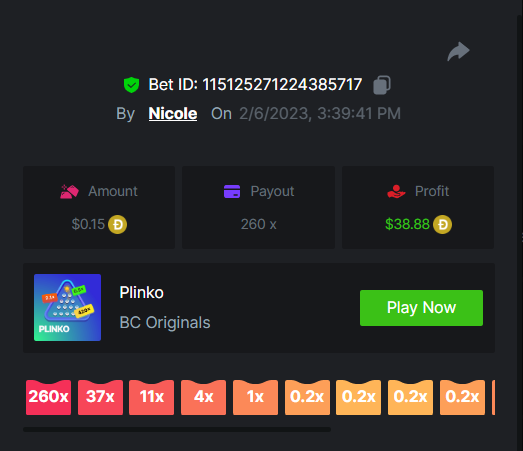 6. Multiplier : x29 Bet Link : https://bc.game/#/sd/112JDP36FXOS9F Screenshot : Multiplier : x13 Bet Link : https://bc.game/#/sd/112JE4FCNDEEQB Screenshot : Multiplier : x43 Bet Link : https://bc.game/#/sd/112JEE21HXIRRN Screenshot : Multiplier : x76 Bet Link : https://bc.game/#/sd/112JFHHH2ATZBN Screenshot : Multiplier : x22 Bet Link : https://bc.game/#/sd/112JFR1L18K1SJ Screenshot : Multiplier : x120 Bet Link : https://bc.game/#/sd/112JGA0S53SAAB Screenshot : Multiplier : x420 ( Bountty ) Bet Link : https://bc.game/#/sd/112U74863DAS5V Screenshot : Multiplier : x37 Bet Link : https://bc.game/#/sd/112L3NWMS008B7 Screenshot : Multiplier : x11 Bet Link : https://bc.game/#/sd/112L3TR7V9P2J7 Screenshot : Multiplier : x170 Bet Link : https://bc.game/#/sd/112XPNOPOPEWPF Screenshot : Multiplier : x260 Bet Link : https://bc.game/#/sd/112XQ1C9EVJJ83 Screenshot : Multiplier : x620 ( Bounty ) Bet Link : https://bc.game/#/sd/112XQM9K20642B Screenshot : Multiplier : x33 Bet Link : https://bc.game/#/sd/112XTK5C9MGRO3 Screenshot : Multiplier : x58 Bet Link : https://bc.game/#/sd/112XU9VHRPNBBN Screenshot :