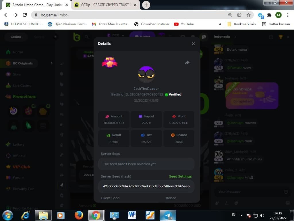 2. Created by : JackTheReaper Game : classic dice Hunt : hunt result 99.99 Payout : over 3300× Do not use JB or GB
