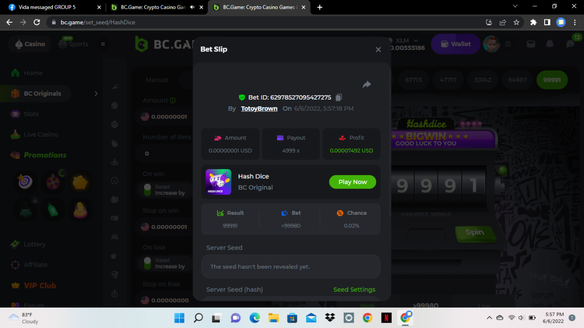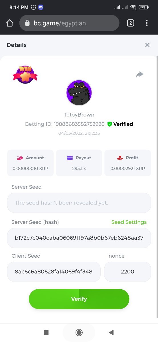 Easy 1. IG username: jy0101012 2.IG post link: https://www.instagram.com/p/CcQ15iihtEh/ IG username: jy0101012 3.Twitter Handle: jy0101012 4.Twitter Link post: https://twitter.com/BCGameOfficial/status/1513818244859457537?s=20&t=k-Gx9ZNEpjCFZIQLuoWYbQ Twitter Handle: jy0101012 5.FB profile link: https://m.facebook.com/john.yan.16121?lst=100042354130320%3A100042354130320%3A1649794589 6. 7. Sports Bet id: 2125322774074499456 8. 9. 10. Enable 2FA Medium 1. 2. 3. 4. 5. Sports Bet id: 2126036089507557603 Hard 1.Wheel 49.5 https://bc.game/sd/?sd=10ILDC7GCTCAOJ