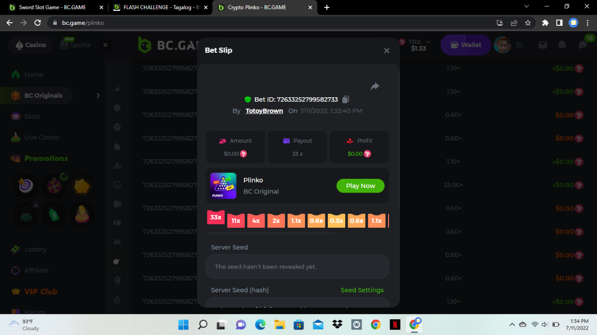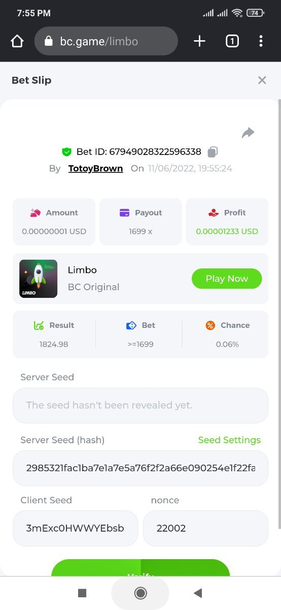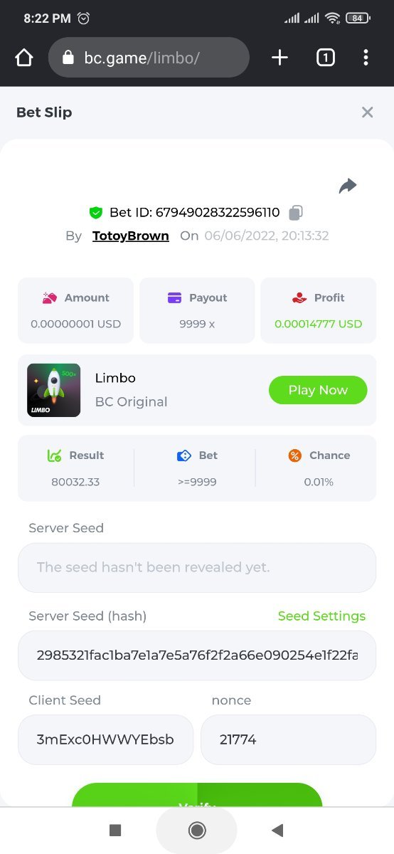 Game:Limbo Hunt: x100 and the last two numbers in the bet id must be 10