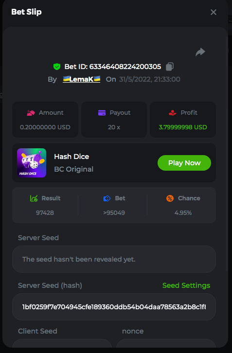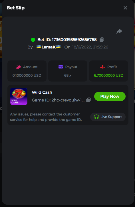 17. Bet ID: 1736003935592656768 https://bc.game/sd/?sd=10MXN23CRBUSCZ Bet ID: 1736342318006914432 51,5X LOL https://bc.game/sd/?sd=10N6WAVKZGUKGJ