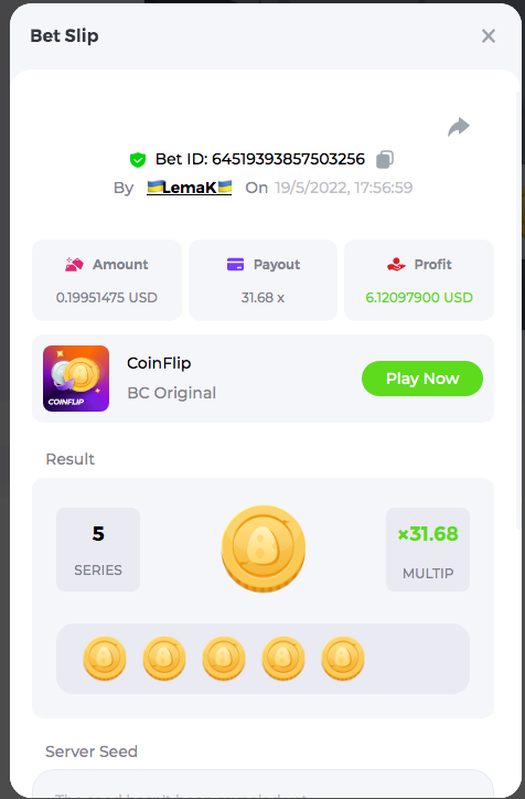 4. https://bc.game/sd/?sd=10QZAG7SY3OZRN Bounty 500X ID de la apuesta: 79915399914717185