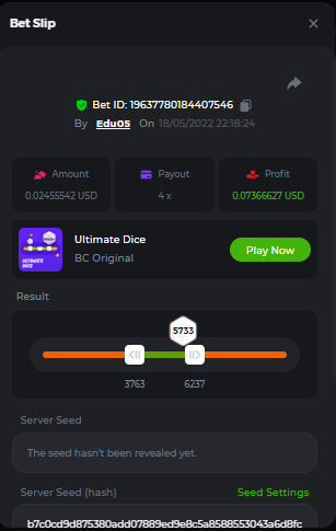 Desafio Semanal - Ultimate Dice Inicio: 18 de Maio 19:30 pm -3 GMT Encerra: 25 de Maio 23:59 pm -3 GMT "This challenge is only for the people from the Portuguese room" Confira abaixo os termos e condições completos e como você pode ganhar essas recompensas! Vamos explorar suas habilidades com os dados. Um dado não gira a menos que alguém o jogue. Qual é o desafio? Busque a maior multiplicador em nosso Ultimate Dice (pagamento 4x) VIP mínimo Não há nível VIP mínimo Pagamento mínimo Multiplicador mínimo é de 4x Mínimo da aposta Equivalente a US$ 0,01 Moedas elegíveis Todas as criptomoedas são elegíveis (exceto JB e BCL) Prêmios disponíveis 1º lugar ....... $5 2º lugar ..... $3 3º lugar ...... $2 Como entrar: Para participar, copie o link da aposta que deseja enviar. Depois de copiá-lo, cole-o como resposta a este tópico da seguinte forma: Link: https://bc.game/sd/?sd=10KT2BOT2Z6QDV Na mesma postagem, faça o upload de uma captura de tela de sua vitória clicando no ID do jogo COM VISUALIZAÇÃO NO modo USD ATIVADO (acessível na parte inferior do menu suspenso da sua carteira na parte superior. Dessa forma, podemos garantir que sua aposta realmente atendeu ao requisito mínimo no momento da colocação: Link: https://bc.game/sd/?sd=10KT2BOT2Z6QDV Por favor, combine todos os seus hits em um ÚNICO post. Edite sua postagem existente para obter hits adicionais, não crie uma nova postagem. Uma (1) entrada por família . Qualquer pessoa encontrada com multiconta será desqualificada deste desafio, bem como de todos os desafios futuros. As apostas devem ser feitas durante a janela de tempo especificada acima. Este encadeamento será bloqueado automaticamente quando o período de tempo terminar. O não cumprimento das instruções resultará na nulidade do seu envio. Os pagamentos serão feitos dentro de 72 horas após a conclusão do desafio, por favor, seja paciente, prometemos que não esquecemos. Os prêmios serão pagos em BCD. Boa sorte!!!