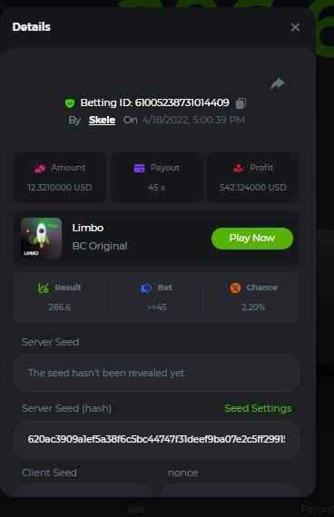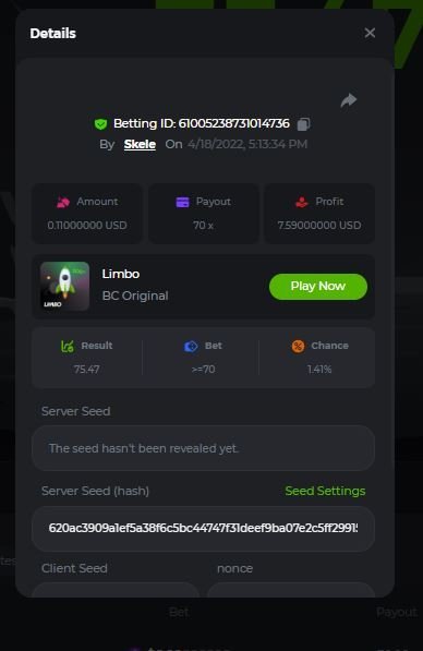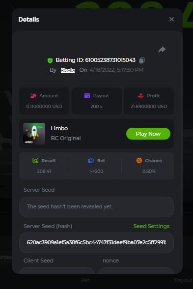 8. So this would be more a live either in a big group but it would be more fun as like the final of some challenge or something but get 2 or 3 poeple playing and like on the game show price is right, have them guess a payout for limbo. After everyone has guessed the host with the screen shared will do one round of limbo to see where it crashes the one closes to their number wins. This could be done in like groups of 3 with a winners round or in a elimination brackets style. I just think it would be harder and more fun to make them have to pick an actual payout ahead of time instead of just going for highest. And they all get the same result because it is the host that runs the round of limbo so its impossible for them to cheat. Unless they want to use price is right strategy and if someone says 100x they could go 99x and get all the numbers 1-99 ahead of the opponenet. @VlkyrieThis might be a good idea for some flash event or something too, because of the picking of the number i don't think it would work for daily though .