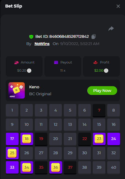 $2,500 Prestige Keno Multiplayer Challenge #45