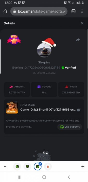 Sleepiez BGaming Candy Monsta (120.5x) Betting ID: 1719771673415153415 BetSoft Safari Sam2 (145.65x) Betting ID: 1720206799224722183 GameArt WolfHunt (66x) Betting ID: 1720209416468779136 NolimitCity Tombstone(145x) Betting ID: 1720210419231831047 Quickspin Most Wanted 3(106.88x) Betting ID: 1720214130037355392 Playson Book of Gold2 (114.75x) Betting ID: 1720237312263717504 Habanero Betting ID: 1720240090905229184 Pragmatic Xmas Carol 92.4x Betting ID: 1720297147592160519 Tiresome event playing so many slot just for 2000cash prize for 10player. Can you atleast have some automated scoring script so we dont need to keep posting one by one.