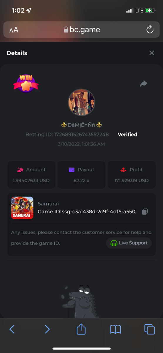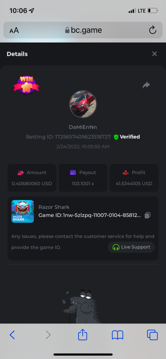 5. https://bc.game/sd/?sd=10H6B2VPA8NCB7 24.0304x $0.25 bet https://bc.game/sd/?sd=10H7GPCBDWKNWZ 100x $0.10 bet https://bc.game/sd/?sd=10H7HZSBB3BDW3 25.4x $1.00 bet