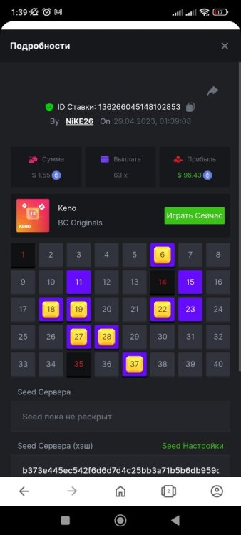 1. 5x https://hash.game/#/sd/11DKAWHXU6LONN 15x https://hash.game/#/sd/11DKB1T5PEQP03 25х https://hash.game/#/sd/11DKKAFG7GA4NN 33х https://hash.game/#/sd/11DKKDIIZ176S3 44х https://hash.game/#/sd/11DKKGMXNYERRN