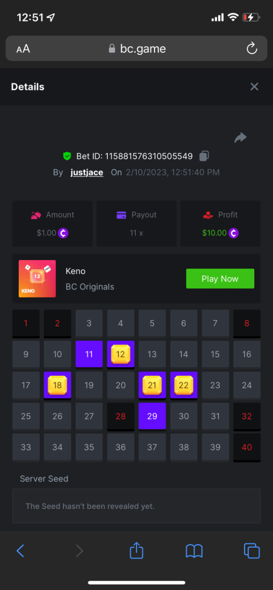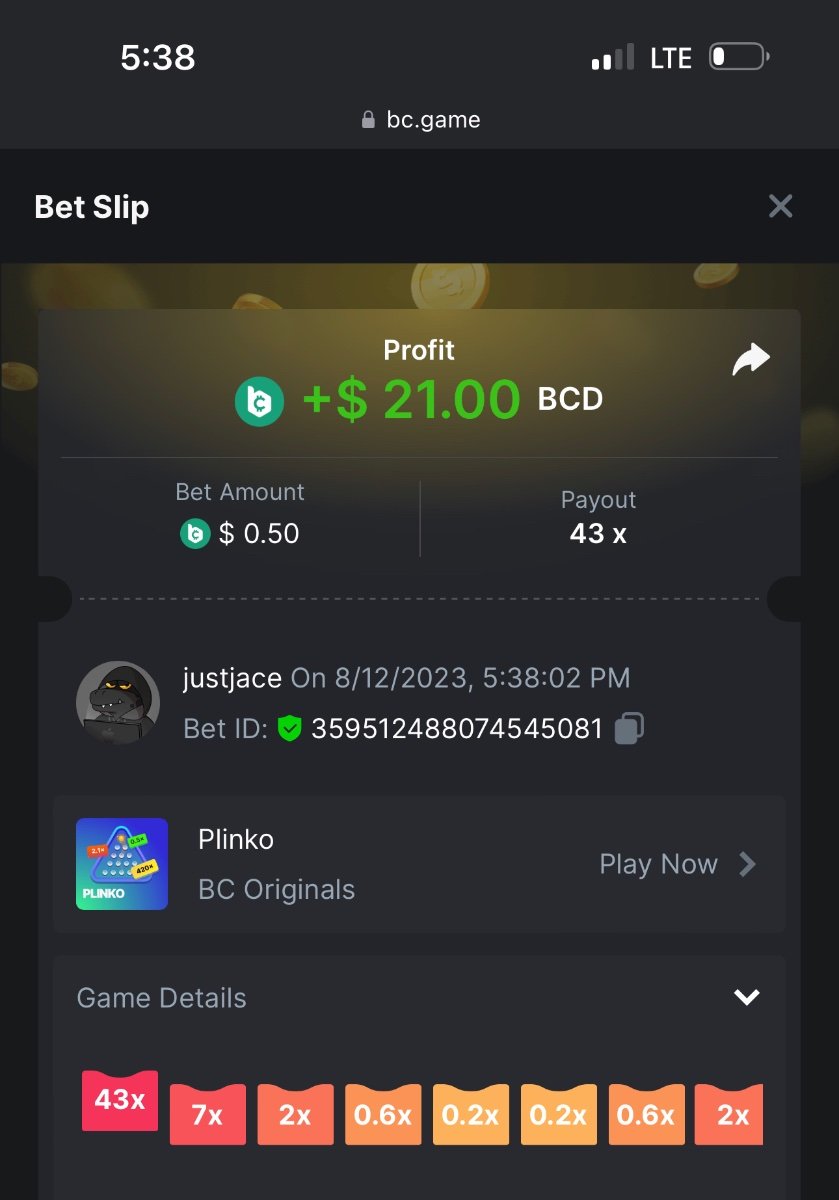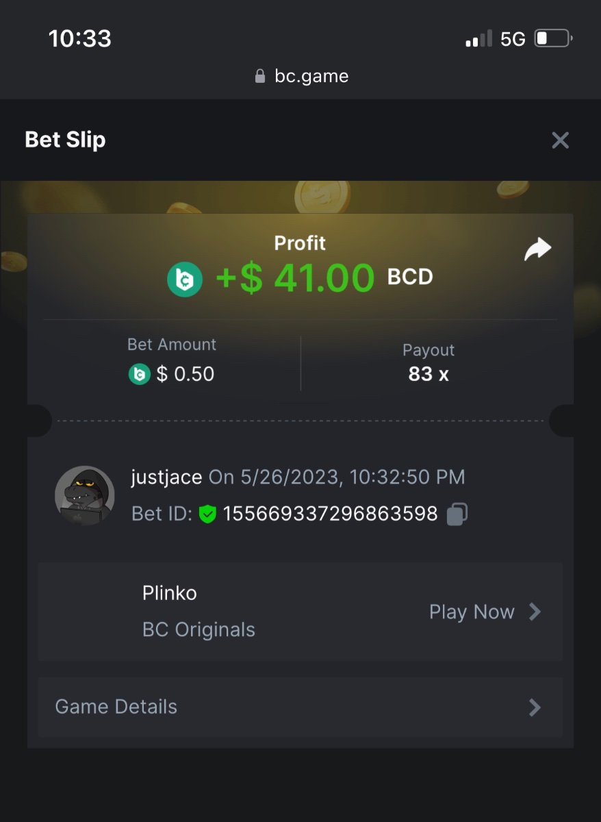 5.1x : https://bc.game/#/sd/1138ZN41M803RN 11x: https://bc.game/#/sd/1138ZWV6Q4I0IB 100x: https://bc.game/#/sd/113DU4H2V30MQB 180x: https://bc.game/#/sd/113DUHFTXSW4K3 63x: https://bc.game/#/sd/113E3M85OJT1XV -
