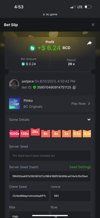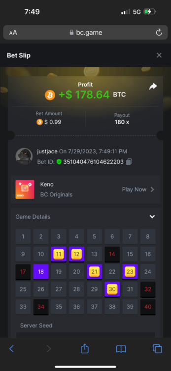 5.1x: https://bc.game/#/sd/118ROTNAR84R9V 8x: https://bc.game/#/sd/118RQVPP8BQYAB 11x: https://bc.game/#/sd/118RPW4RVZQVPV 56x: https://bc.game/#/sd/118RRFI8VER3TF 81.5x: https://bc.game/#/sd/118RS6P6T5KLJN 100x: https://bc.game/#/sd/118U0YISWJW5CJ