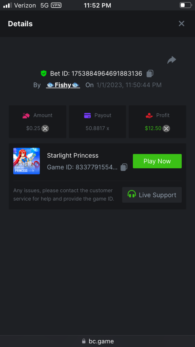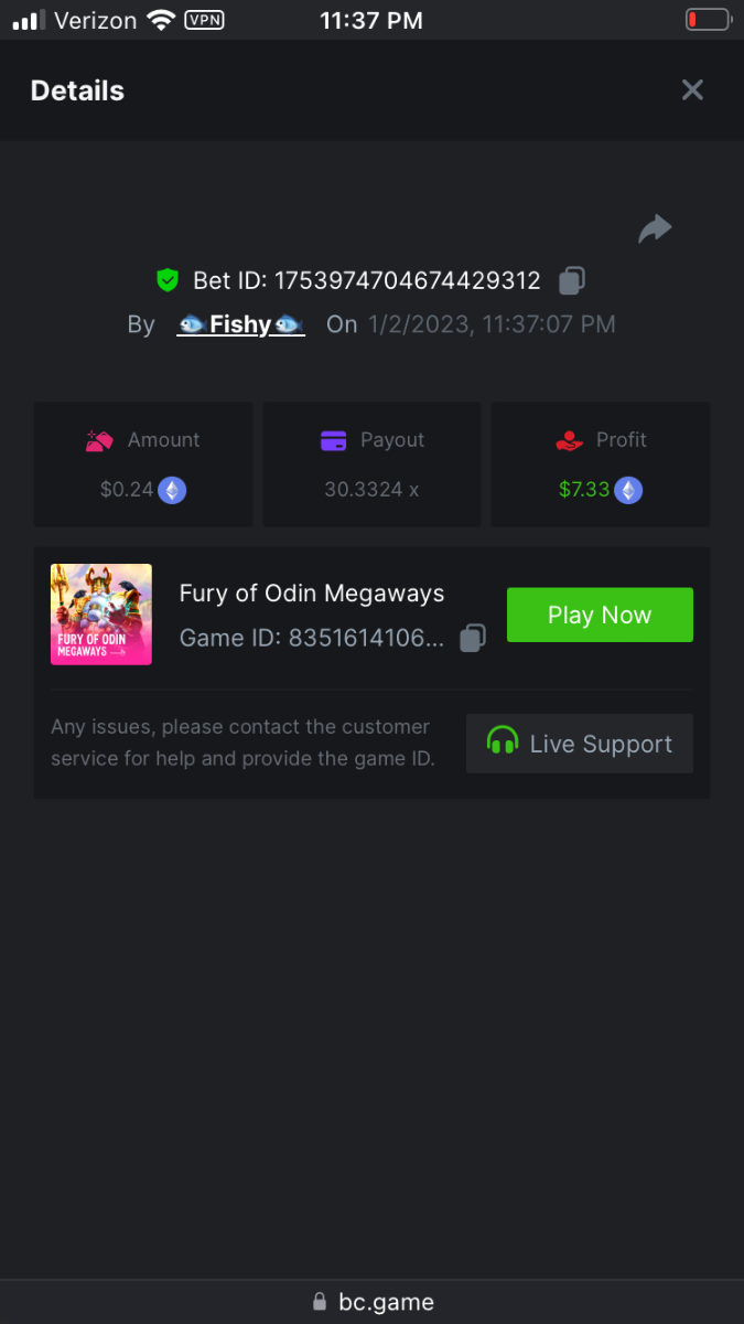 7. Candy Monsta: 76.5x ID: 1720271427738730759 Road 2 Riches: 25.8x ID: 1719875859865954176 Aloha King Elvis: 95.6x ID: 1719897835630982663 Bonanza Billion: 118.56x ID: 1720087228163131399 Fruit Million: 29.2x ID: 1719898672644861312