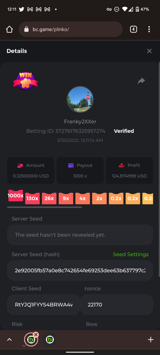 EASY: 1. Follow Instagram: whiteazn92 2. Post Photo/Video Tag BC.game: whiteazn92 https://www.instagram.com/p/CcUctBSu5Om/?utm_source=ig_web_copy_link 3. Follow BC on Twitter: Franky2XXer 4. Like and Retweet latest BC post: Franky2XXer 5. Follow BC Facebook page: Luke Hall 6. Cave of Plunder 7.50x: 7. 8. 20x multi Amatic Lady Fruits 100 Easter: 9. 30x Multi Gamomat Ramses Book Easter Egg: 10. Complete MEDIUM: 1. 10X Multi PlayNGo Easter Eggs: 2. Roulette Single Bet 0 (36X): 3. Get a 76x win on Plinko: 4. 60X Multi Wazdan Power of Gods Medusa Easter: 5. 6. 7. Keno Single 7, 8, 30 Medium Risk: 8. 90X Multi Big Time Gaming White Rabbit: 9. Black-Jack Only Red Cards: 10. HARD: 1. Wheel 49.5X: 2.PLINKO 420X: Bet ID#: 60146842272279722 3. Limbo 500X Multi: 4. 5. 6. 7. 8. 9. 10.