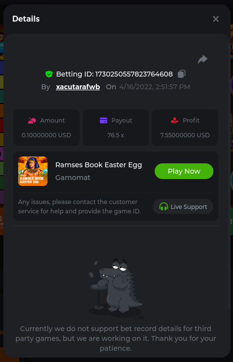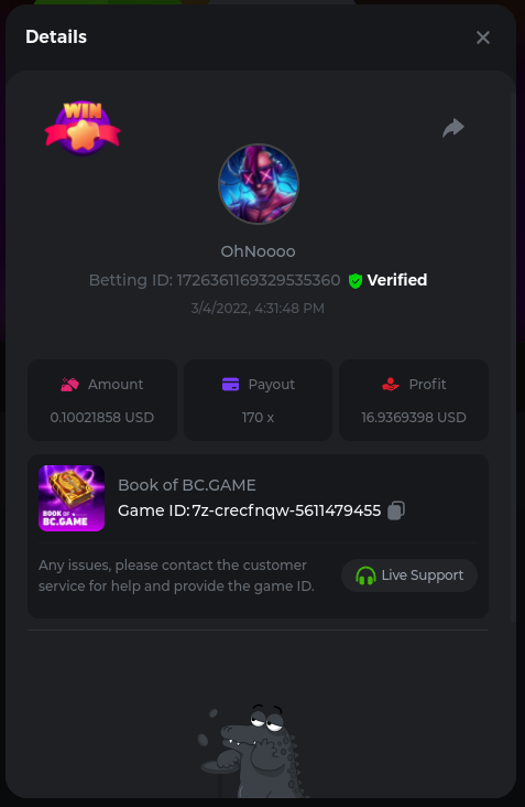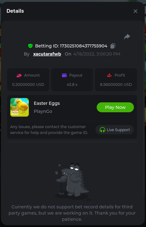 6. Easy Follow BCGame on Instagram (screenshot & IG username required). Post a photo or video on Instagram and tag BC.Game official profile (link to post & IG username required). Follow BCGame on Twitter (screenshot & twitter handle required). Like & Retweet the latest BC.Game Twitter post, tag at least 3 friends (link to post & twitter handle required). Follow BCGame on Facebook (screenshot & FB username required). Win a bet in Cave of Plunder on 7.50x payout (Completing all book symbols). https://bc.game/sd/?sd=10IK97QDGSLJPV Win a Sports bet with minimum odds being 1.3x (singles only) 1$ base min amount. Get a minimum 20x multi on Amatic Lady Fruits 100 Easter slot. Get a minimum 30x multi on Gamomat Ramses Book Easter Egg slot. https://bc.game/sd/?sd=10IKA3RC9WCTUB Enable 2FA for your BC.Game account (If it's already activated, keep it activated during event week). Medium Get a minimum 10x multi on Play&Go Easter Eggs slot . https://bc.game/sd/?sd=10IKAJU7TYZQC3 Win a bet in Roulette Single with betting on 0 only (36x). https://bc.game/sd/?sd=10IKAPIXLIF0GJ Get a 76x on Plinko. https://bc.game/sd/?sd=10IKB85MEHSSUR Get a minimum 60x multi on Wazdan Power of Gods™: Medusa Easter slot. https://bc.game/sd/?sd=10IKD69MDUBCIB Win a Sports bet with minimum odds of 2x (singles only) 1$ base min amount. Win a bet with Straight Flush in Video Poker (60x). https://bc.game/sd/?sd=10IKHG15WI1IQB Win a bet on Keno Single by selecting numbers 7, 30, and 8, Medium risk. (50x). https://bc.game/sd/?sd=10IKBI1TJRBWUR Get a minimum 90x multi on Big Time Gaming White Rabbit slot. https://bc.game/sd/?sd=10INY28VYQXUDV Win a bet by getting a natural Blackjack (A+K/Q/J/10) with only red cards in it. https://bc.game/sd/?sd=10IKCI4Q47Q0B7 Get a minimum 100x multi on No Limit City Bonus Bunnies slot. Hard Get a 49.50x on Wheel (50 segments, High risk). https://bc.game/sd/?sd=10IKIHFBAG6903 Get a 420x on Plinko (14 rows, High risk). https://bc.game/sd/?sd=10IO2W0TJPKWLV Win with a minimum 500x multi on Limbo. https://bc.game/sd/?sd=10IKH2KBUGNJF7 Get at least 300x multi on BGaming Hello Easter slot. Win with a minimum 999x on Crash. Get a minimum 100x multi on Pragmatic Chicken Drop slot. Get a minimum 100x multi on Push Gaming Fat Rabbit slot. Post a winning bet with 21 mines and 3 diamonds on Mines game, (569.25x). https://bc.game/sd/?sd=10IO1QLFAZMDQR Win a bet on Keno Single by selecting numbers 10, 11, 12 and 13, High risk, (259.00x). https://bc.game/sd/?sd=10INWO7SK5TN2R Win a Sports bet with minimum odds of 10x (any bet allowed) 1$ base min amount.