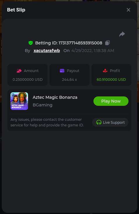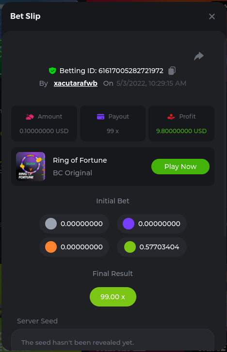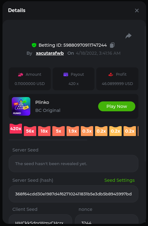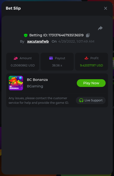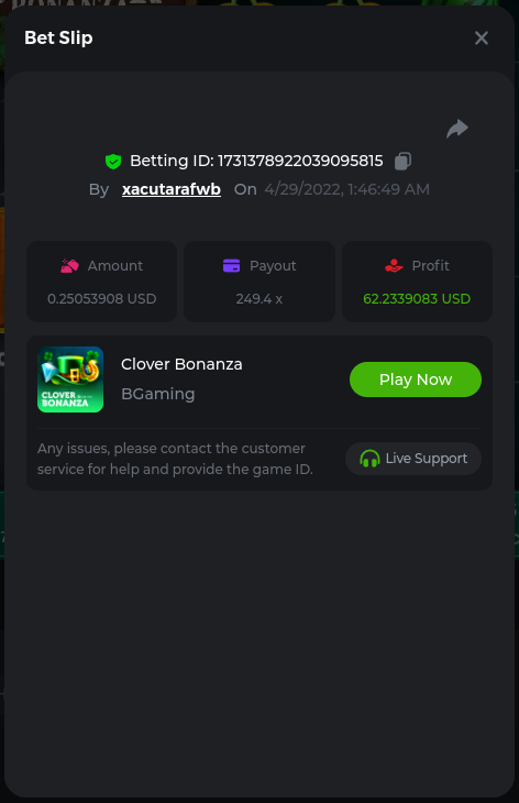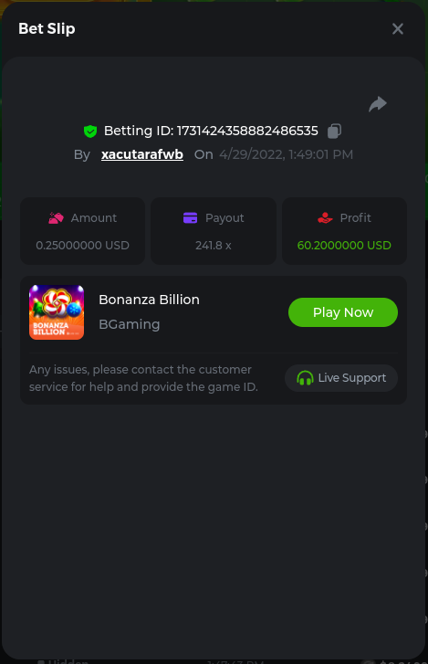 2. Bonanza Billion 241.8x https://bc.game/sd/?sd=10JGDRO125OX77 Aztec Magic Bonanza 244.64x https://bc.game/sd/?sd=10JF3A6J16XD03 Clover Bonanza 249.4x https://bc.game/sd/?sd=10JF54P23D73F7 Lucky Farm Bonanza 89.88x https://bc.game/sd/?sd=10JE0NI1AA9WCZ BC Bonanza 38.56x https://bc.game/sd/?sd=10JF2LWXSCZDHV