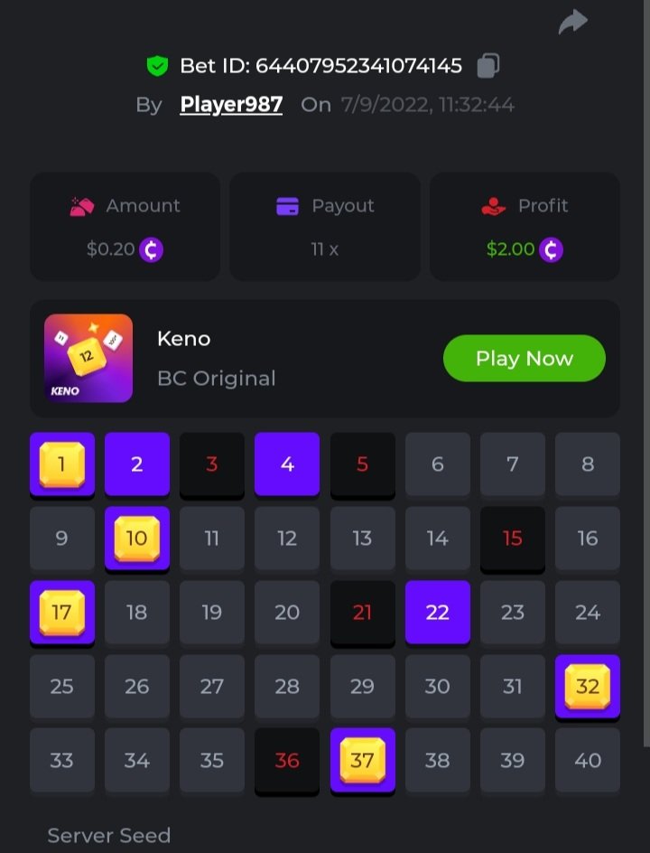 3. | X20 | https://bc.game/#/sd/10VVI0SU1VBNKJ