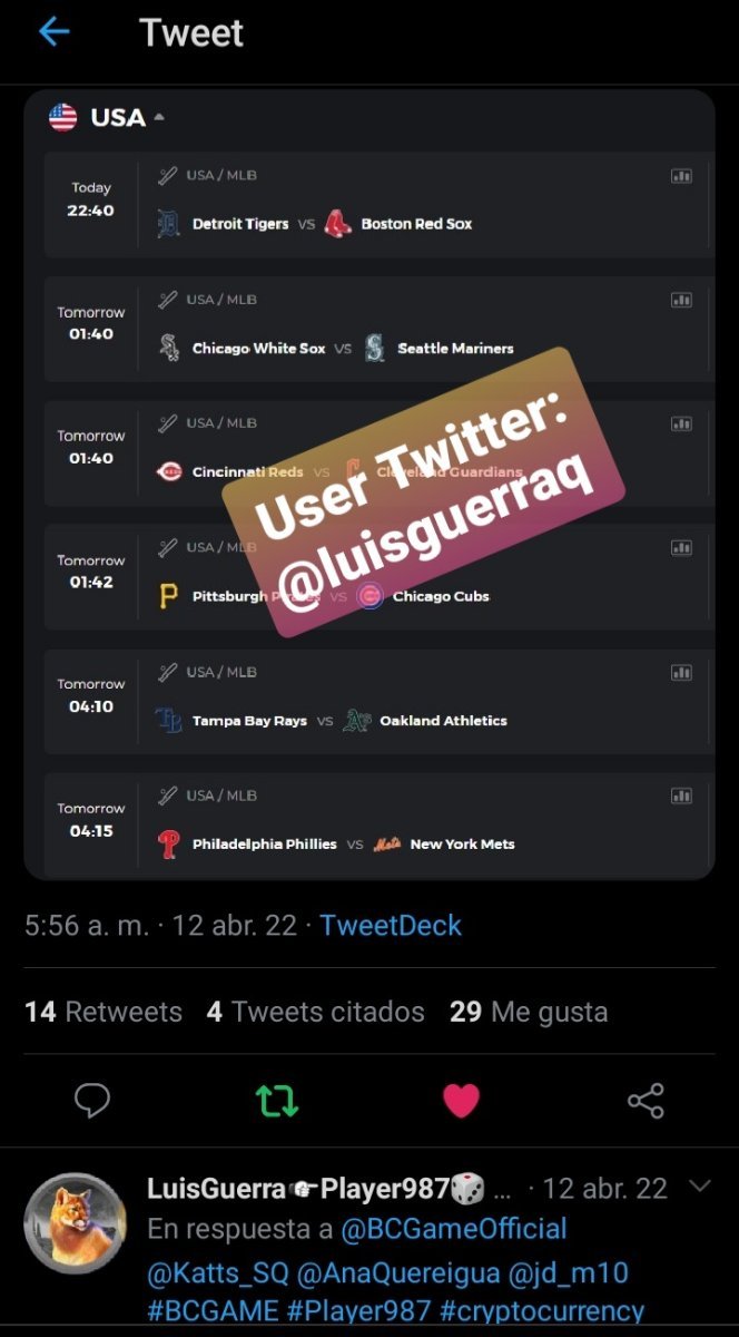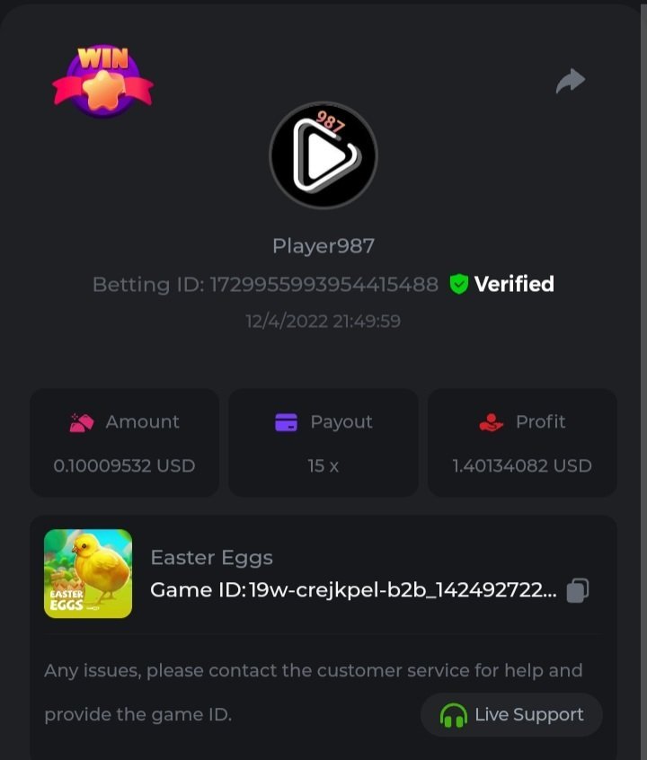 EASY: 1 - Follow BC.Game on Instagram. User: @luisguerraq 2 - Post a Photo on Instagram. https://www.instagram.com/p/CcRMKv3u2ZY/?igshid=YmMyMTA2M2Y= 3 - Follow BC.Game on Twitter. Username: @luisguerraq 4 - Like and retweet the latest BC.Game 5 - Follow BC.Game on Facebook https://www.facebook.com/LDanielGQuereigua 6 - Win a bet in Cave of Plunder on 7.50X Payout (Completing all book symbols) 7.50X https://bc.game/sd/?sd=10ICILBNW6AXOZ 7 - Enable 2FA for My Acount BC.Game MEDIUM: 1 - Get a minimun 10X multi on Play&Go Easter Eggs Sloot. 15X https://bc.game/sd/?sd=10IC7ZBQ3FZ2MR HARD: 1 - Get a 49.50X on Wheel (50 segmentes high risk). 49.50X https://bc.game/sd/?sd=10ICDZK6SUD8GJ