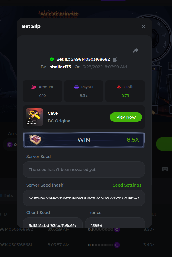 • Capture a multiplier - 7.5x or higher on the Cave of Plunder Game. Make sure you get your multiplier captured on my bets section.