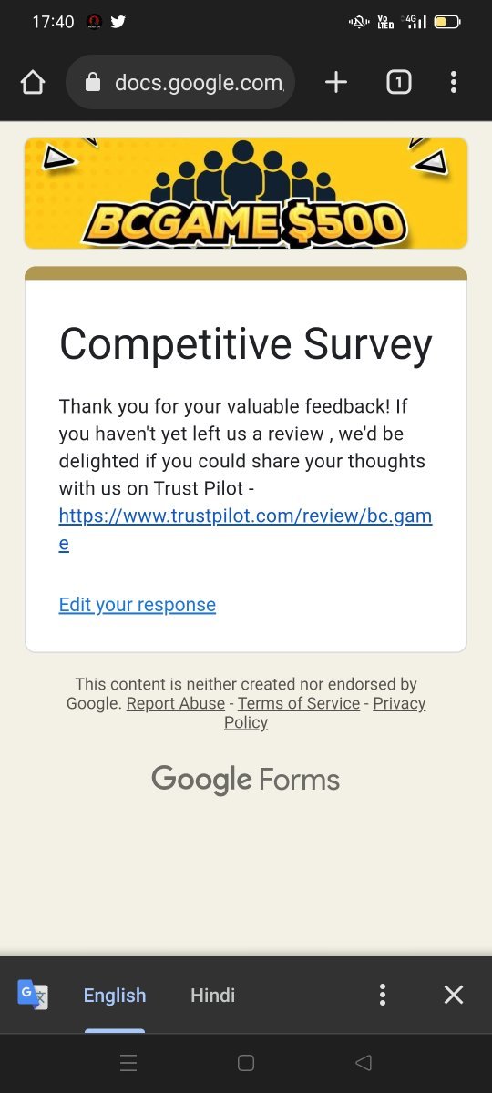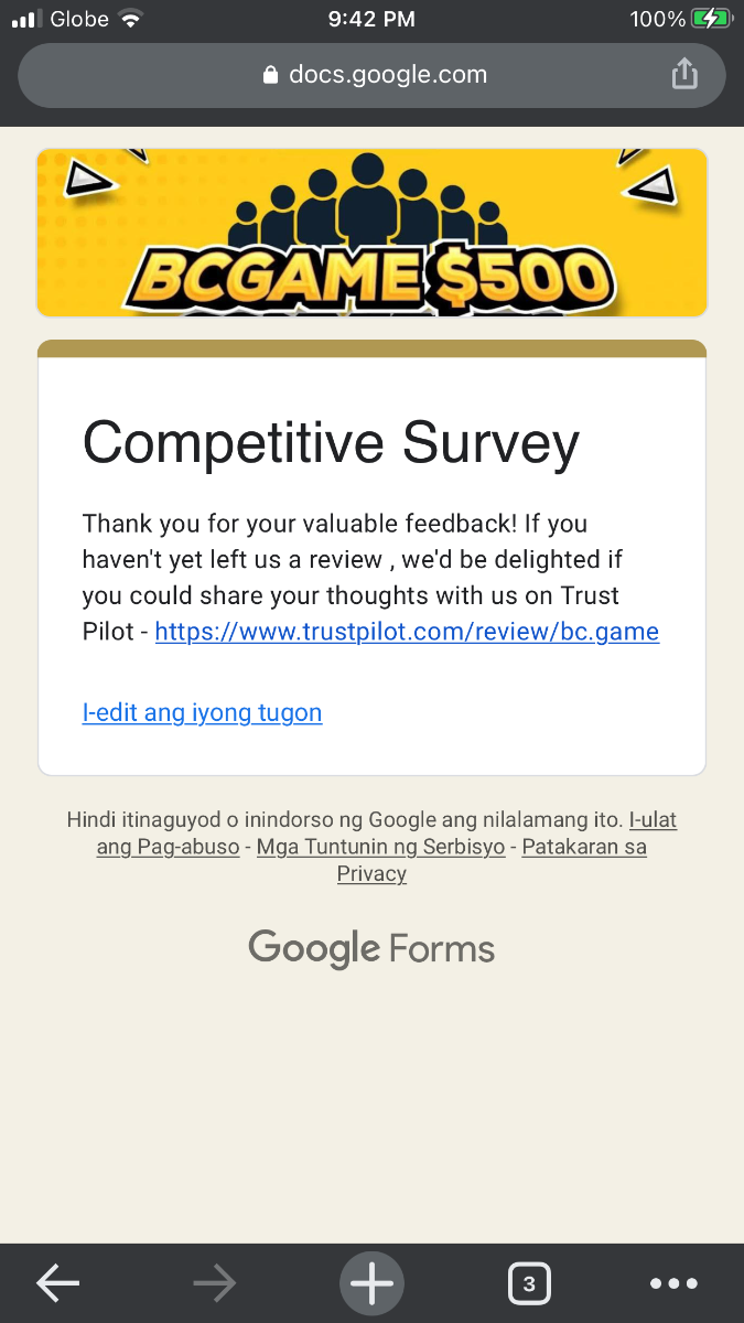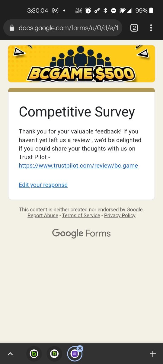 Competitive Survey by BC.GAME - $500 Worth Shitlinks Giveaway