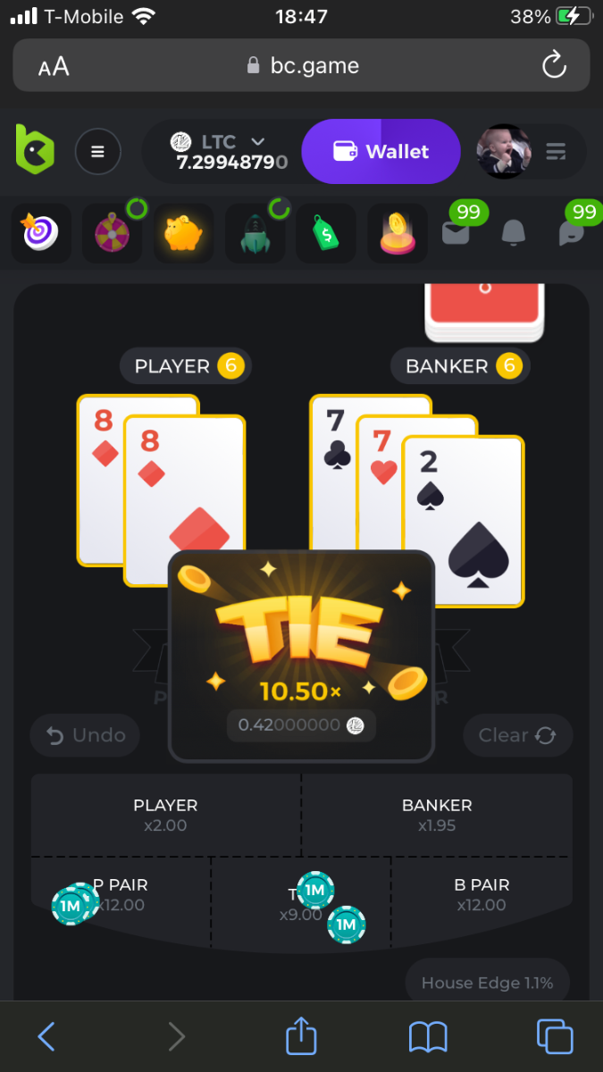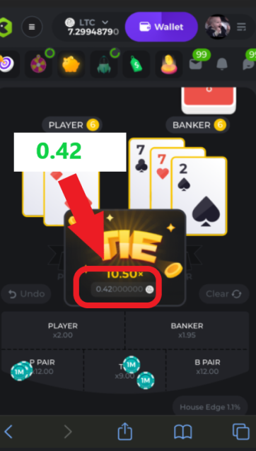 UnwillingNate Posted July 29, 2022 Author Share Posted July 29, 2022 In this case,  i should receive 0.84. because i won pair and tie in total x21 as it shown. I dont know, maybe BC game need to explain.  Its funny when they told if you single bet pair, you will win 12x but if you bet in tie also. Your winning is (12x + 9x )/2 = 10.5 because double side bet. ready to this  if you double side pairs bet (12x + 12x )/2 =12x  How insanity of their explanation? Dont believe me go try the game for yourself lol. Dear oh dear the baccarat, sorry it a scam payout, suggest that only place a single bet only. Otherwise you will get rob instant  Link to comment Share on other sites More sharing options...
