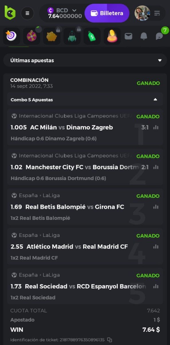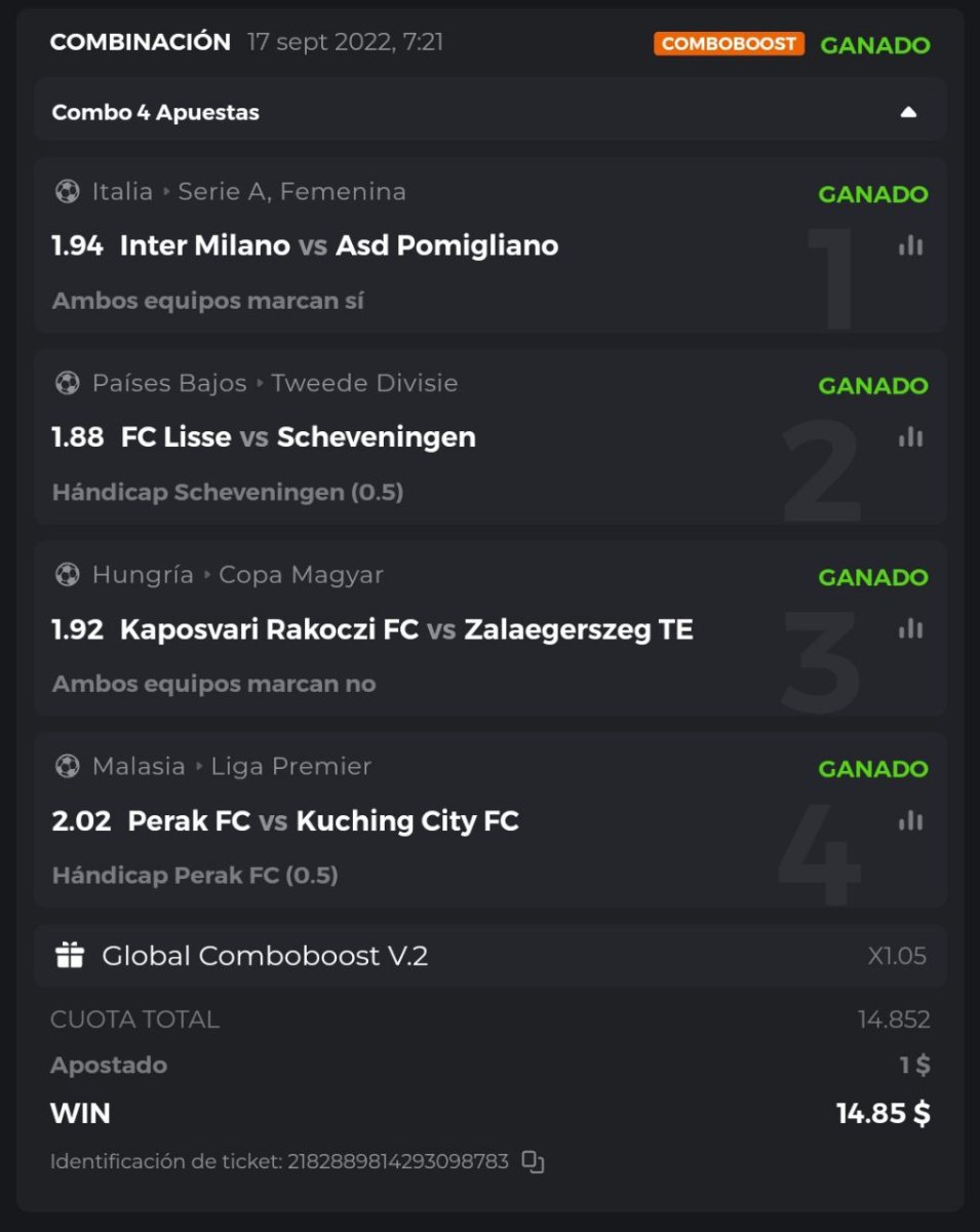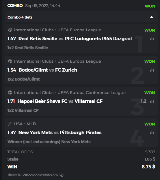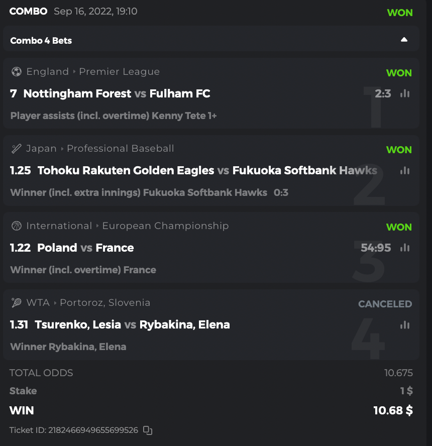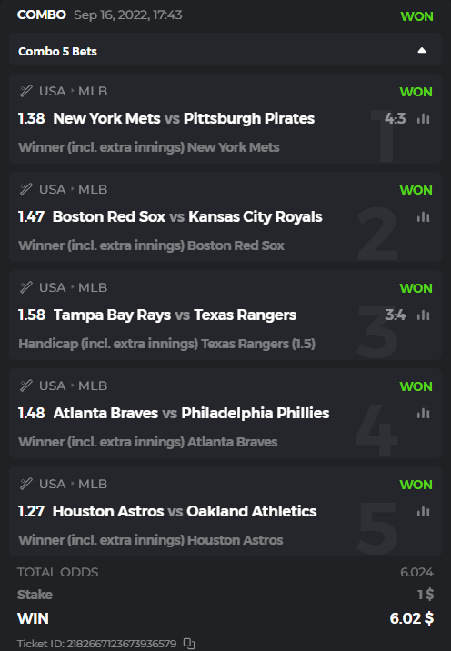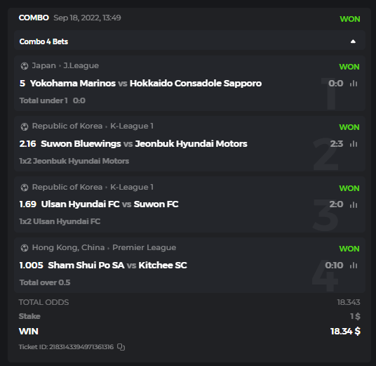 Moderator Mat Posted September 11, 2022 Moderator Share Posted September 11, 2022 $250 BC.GAME SPORTS PARLAYS CHALLENGES #21 Start: 12, Sep 00:00 UTC Ends: 18, Sep 23:59 UTC Hello, ladies and gentleman! Sports Parlay Challenges #21! With a prize pool of $250, the Top 7 takes home a grand prize, and the remaining $60 will be split among all other entrants! What is the challenge? Win a multi-bet with at least x4 by betting on at least 4 matches (all sports) All bet slips must be posted open! Any closed published bet slip will be disregarded! The ODDS for each game will be added up and counted as total points. Voided, half-loss, and half-win bets aren't eligible for the challenge! Cashed-out bets aren’t eligible for the challenge. Using the same odds on a single bet slip isn't allowed Providing the bet link isn’t mandatory Minimum VIP No Minimum VIP Level Minimum payment Multiplier minimum 4x, however, only the top 7 winning parlay multipliers will win the grand prize! Minimum bet size Equivalent to U$$1 Eligible currencies All cryptocurrencies are eligible (except JB) Rewards available 1st place.......$70 2nd place.....$50 3rd Place...... $30 4th Place...... $20 5th Place...... $10 6th Place...... $5 7th Place...... $5 The remaining $60 will be split among all other participants who meet the minimum requirements and minimum stake. How to enter: To participate, post your Ticket ID, along with your Parlay link, as a reply to this thread as follows: Link bet: https://bc.game/sports/?bt-path=%2F%3FbtBookingCode%3D561A9D1 + Ticket ID 2126602890796736992 Along with the screenshot of your accumulated ticket. See how to get your sports bet link below! https://imgur.com/a/BRSyxVE Ticket ID 2126602890796736992 If a selection results in a void or push, the bet will remain eligible as long as it remains equal to or greater than a triple bet and meets the odds requirements. Bets withdrawn will not be counted. Please combine all your hits into a SINGLE post. Edit your existing post to get additional hits, don't create a new post. Bets must be placed during the time window specified above. This thread will automatically lock when the time period ends. One (1) entry per family. If someone finds multiple prizes, they will be disqualified from the challenge as well as all future challenges. Failure to follow the instructions will result in the cancellation of your submission. By entering this challenge, you acknowledge that BC.Game has final decision rights over results and placement. Link to comment Share on other sites More sharing options...